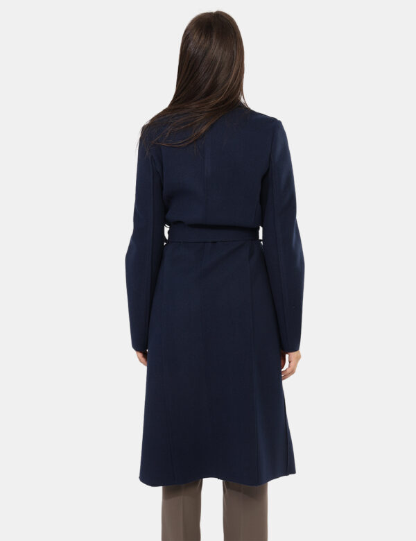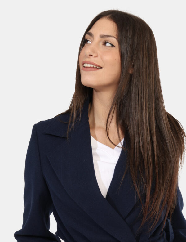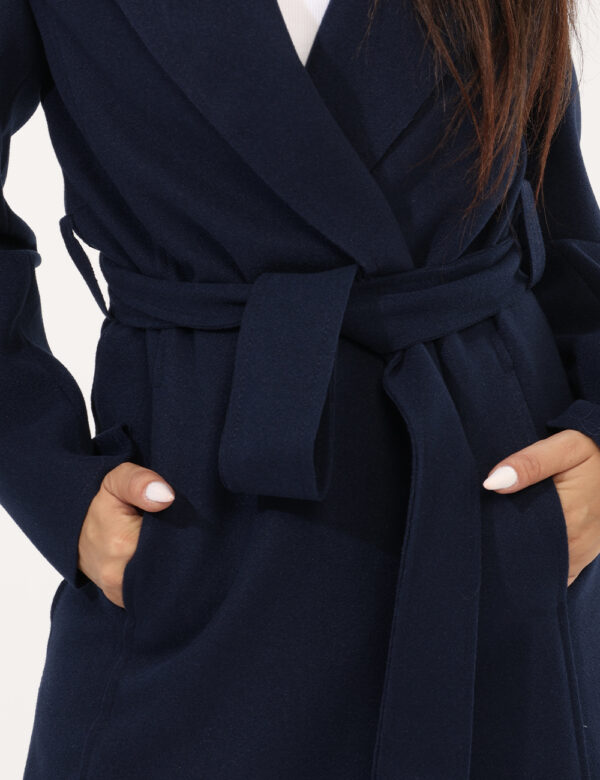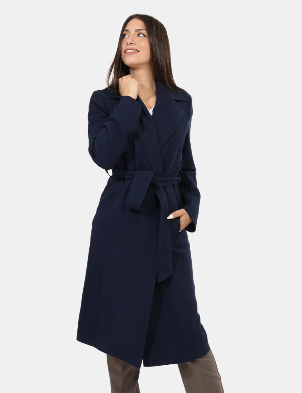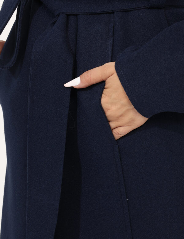 Cappotto lungo in total blu navy, con tasche a taglio trasversale. La vestibilità è morbida e regolabile grazie a cintura in girovita in tessuto coordinata. Il cappotto è ideale per occasioni casual/eleganti, perfetto per l’inferno. Indossalo e concediti il giusto mix di comodità ed eleganza.