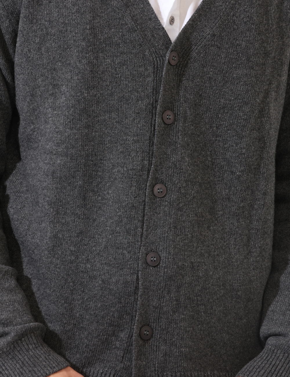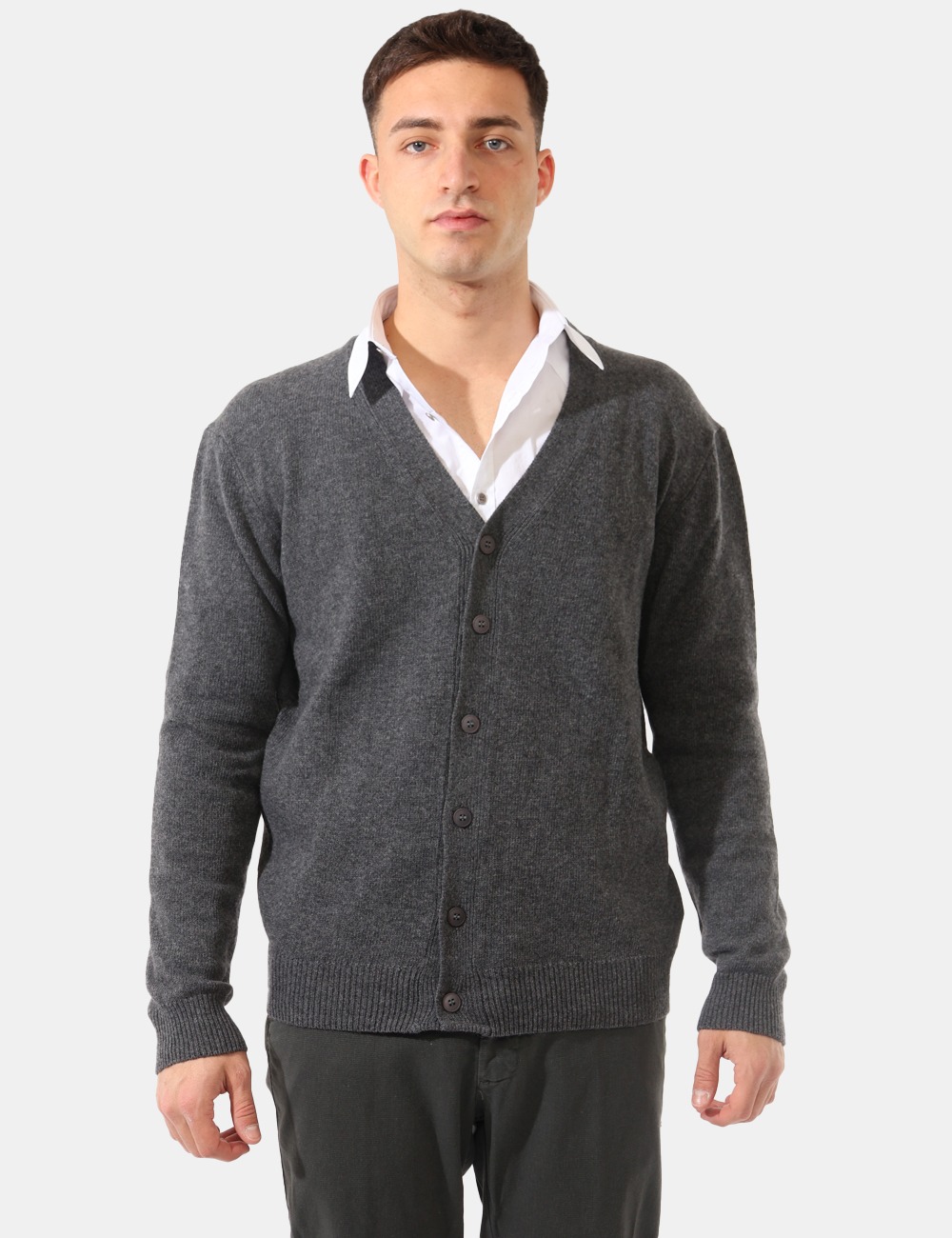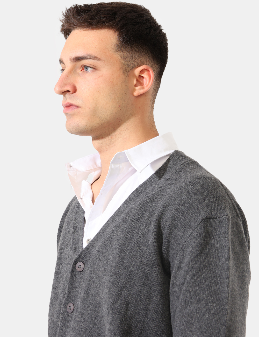 Maglione modello cardigan, in total grigio e misto lana. La vestibilità è morbida e pratica grazie a bottoni ad asola in tinta. Il maglione è adatto per occasioni casual e facilmente combinabile. Indossalo per essere impeccabile.