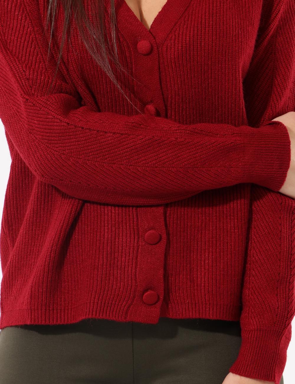 Cardigan morbido e con bottoni. Ideale abbinato a jeans e stivaletti.