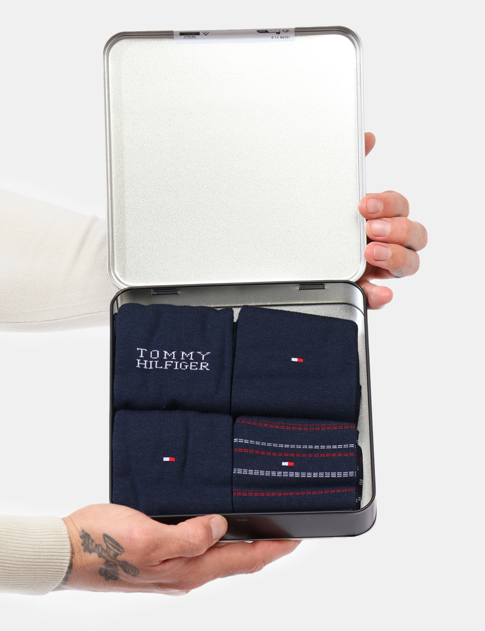 Cofanetto regalo con 4 calze uomo su base blu navy con vari disegnini coordinati. L’indossatura è morbida e garantisce zero fastidi. Il cofanetto regalo presenta scatola in latta riutilizzabile ed è una perfetta idea regalo per il Natale.