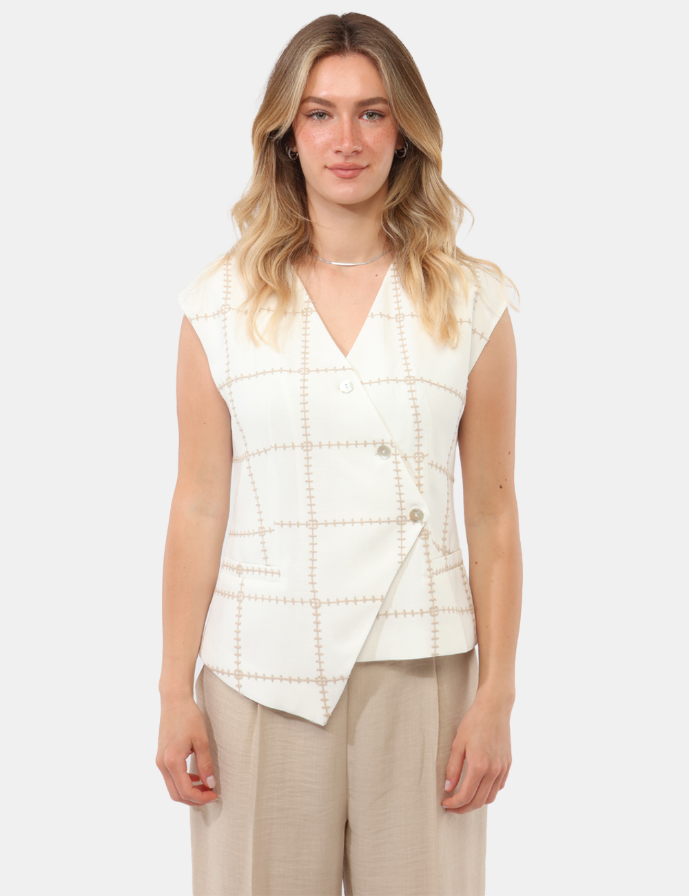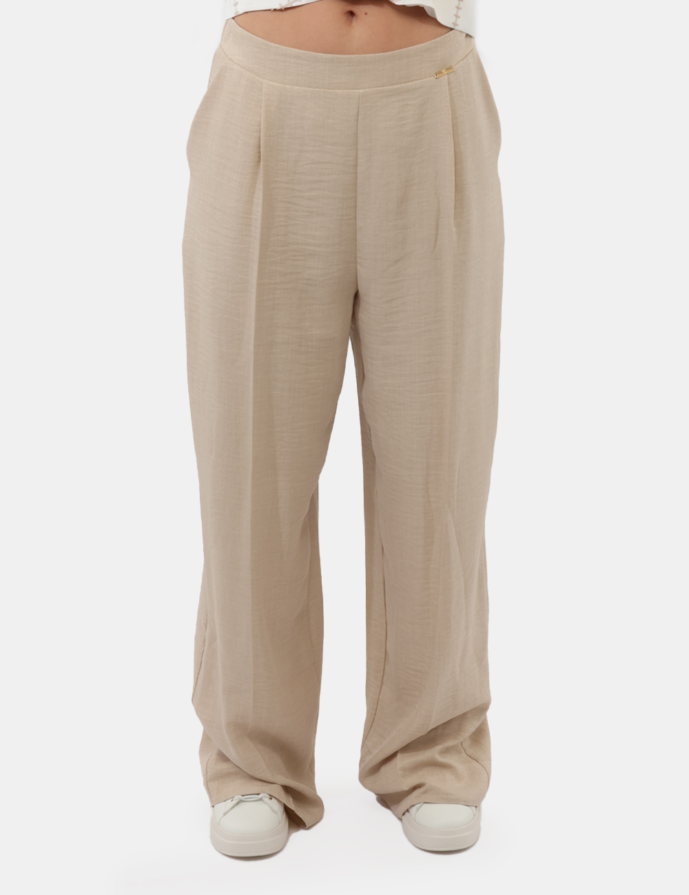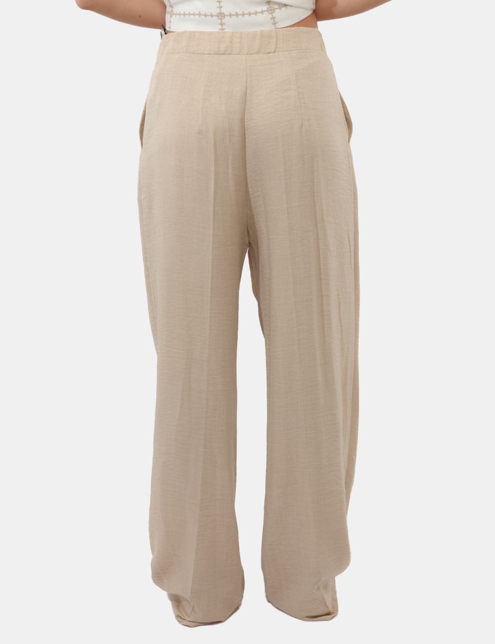 Realizzato in 100% poliestere, questo completo da donna adatto alla primavera estate garantisce leggerezza e comfort durante tutta la giornata. La vestibilità regolare accompagna le forme in modo naturale, mentre il design con gilet con dettagli abbinati al pantalone a palazzo crea un look armonioso e di tendenza, perfetto per chi ama uno stile curato ma rilassato.