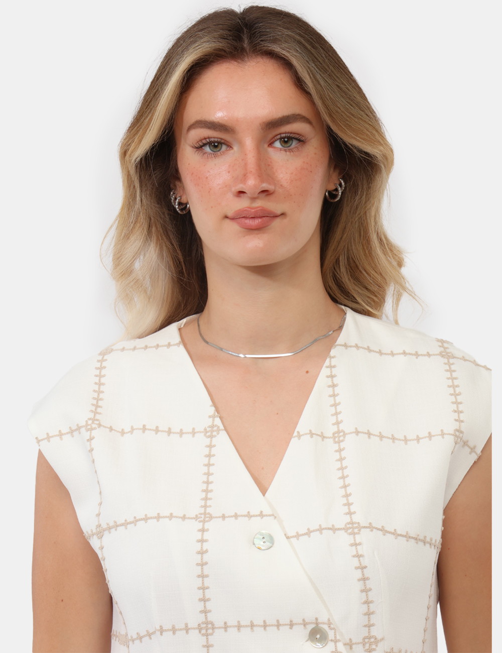 Puoi abbinarlo a sandali con tacco per un look più raffinato, oppure scegliere scarpe basse per uno stile casual e moderno, perfetto anche per il tempo libero.