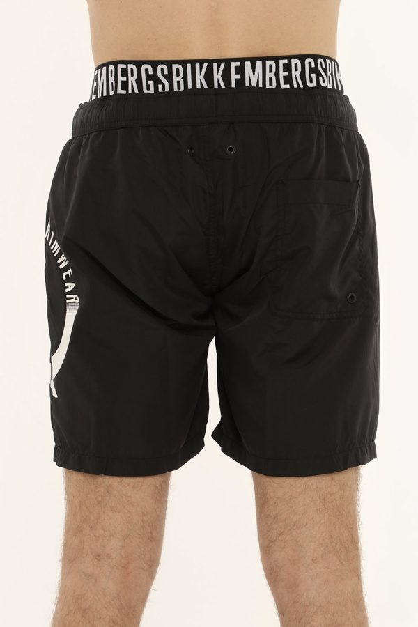 Costume Bikkembergs nero a pantaloncino con retina interna e logo laterale. Presenza di elestico in vita con logo che può essere reso visibile fuori o lasciato interno. Abbinalo alla sua T-shirt.