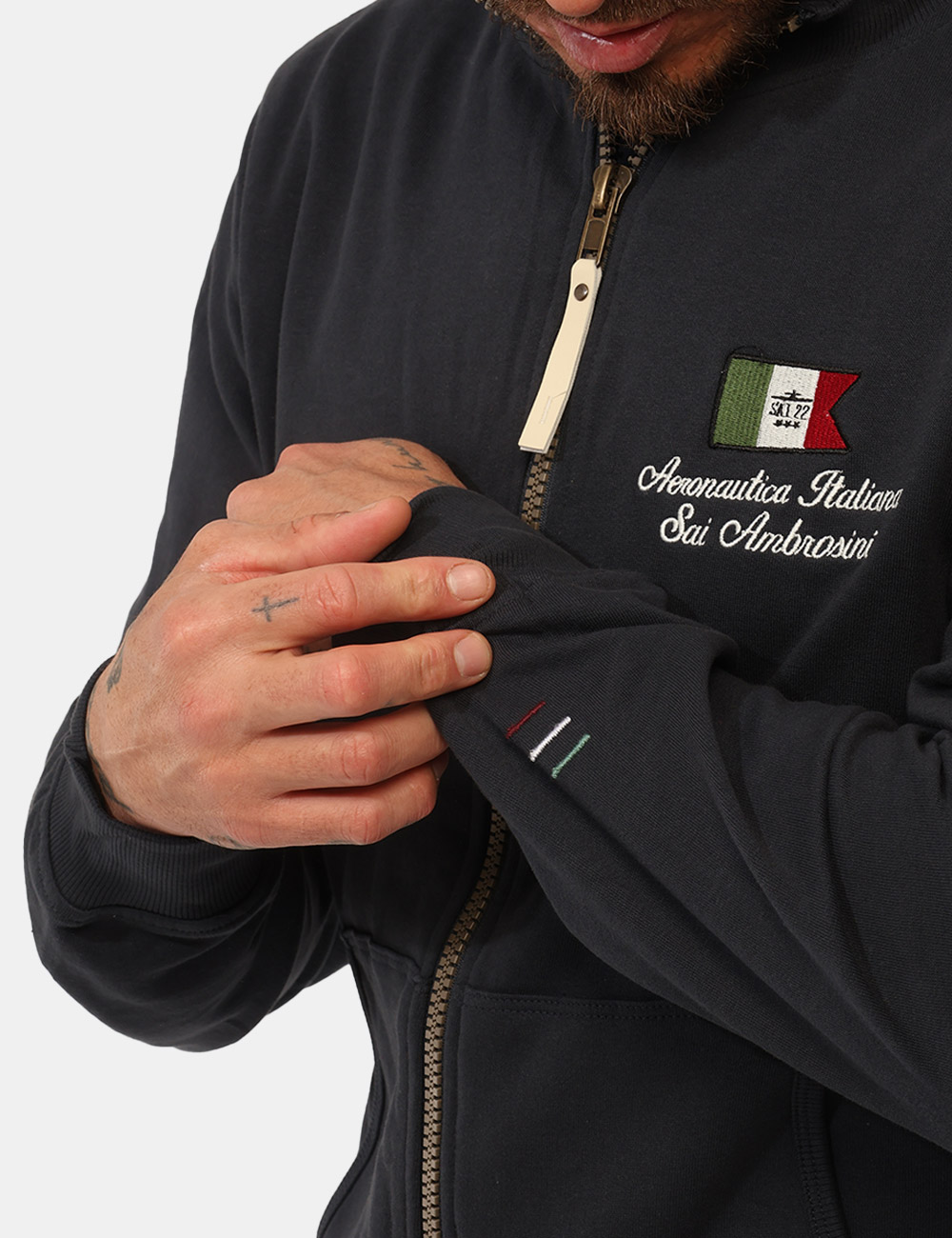 Il modello è alto 187 cm e veste la taglia L, confermando una vestibilità regolare progettata per offrire comfort e libertà di movimento. La Felpa AERONAUTICA ITALIANA Blu è la scelta giusta se desideri un capo semplice ma ricercato, perfetto per accompagnarti ogni giorno.