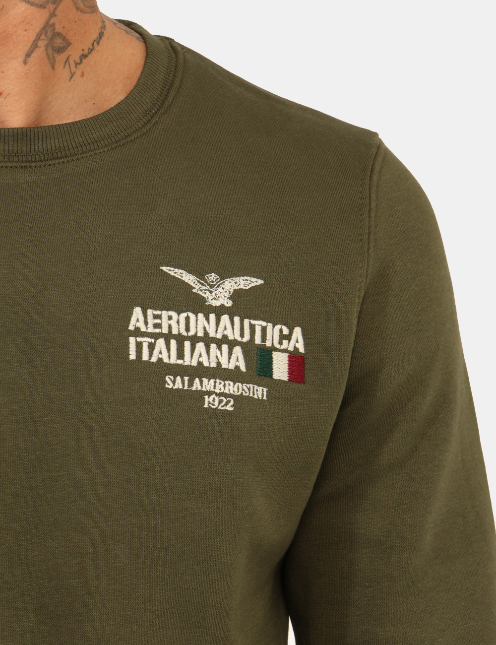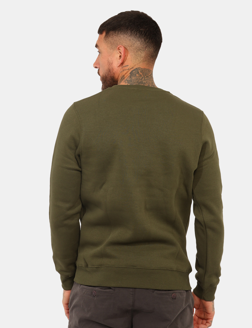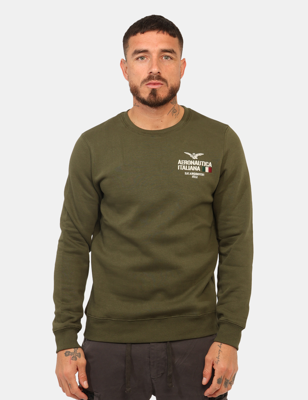 Felpa classica con interno felpato, in total verde militare con stampa logo brand ad altezza cuore. La vestibilità è morbida e regolare. La felpa è adatta per occasioni casual e facilmente combinabile. Praticità e stile in un solo capo.
