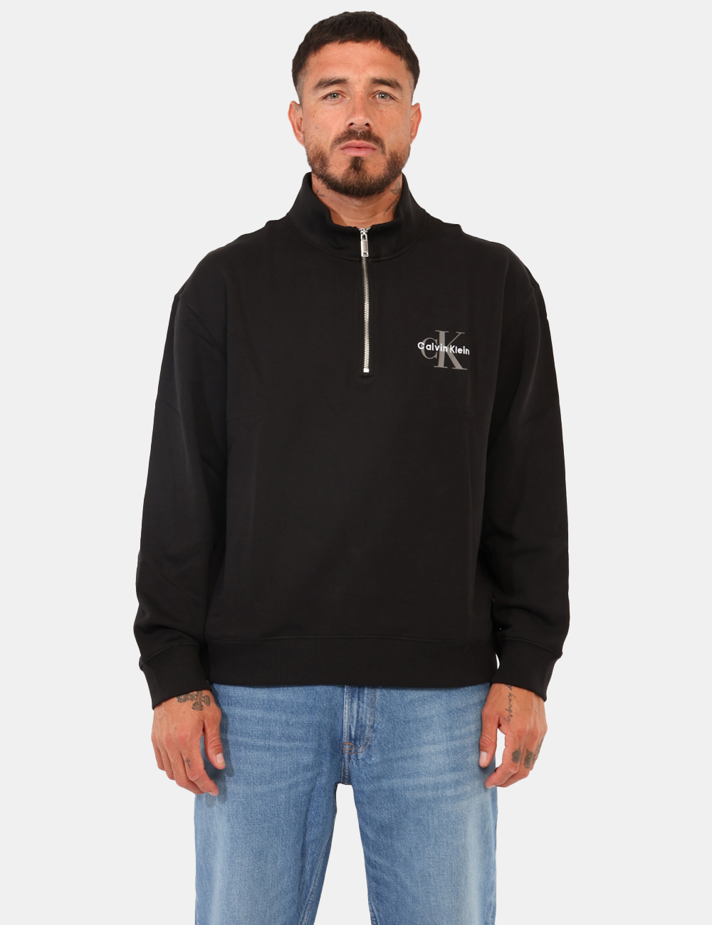 Felpa classica garzata, con polsini, in total nero con logo brand stampato in tinta. La vestibilità è morbida e pratica grazie a zip sul girocollo. Aggiungila al tuo guardaroba e saprai sempre cosa indossare.