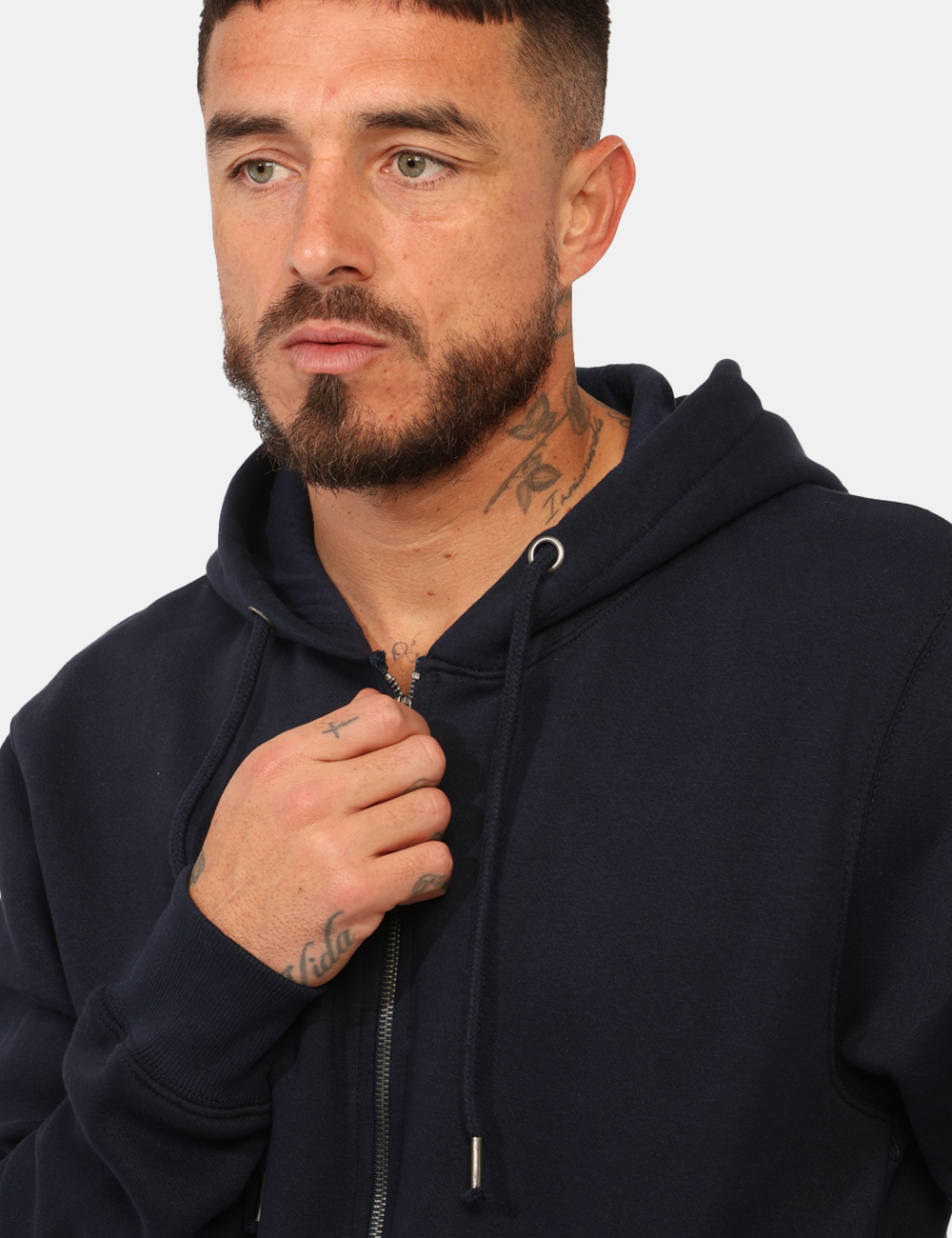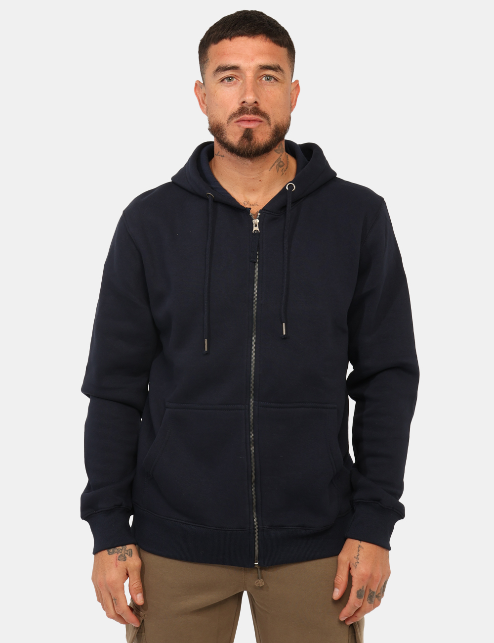 Felpa con cappuccio ed interno felpato, in total blu navy con tasche a taglio trasversale. La vestibilità è morbida e pratica grazie a zip sul fronte. La felpa è adatta per occasioni casual e facilmente combinabile. Aggiungila al tuo guardaroba e scopri di non poterne fare a meno.