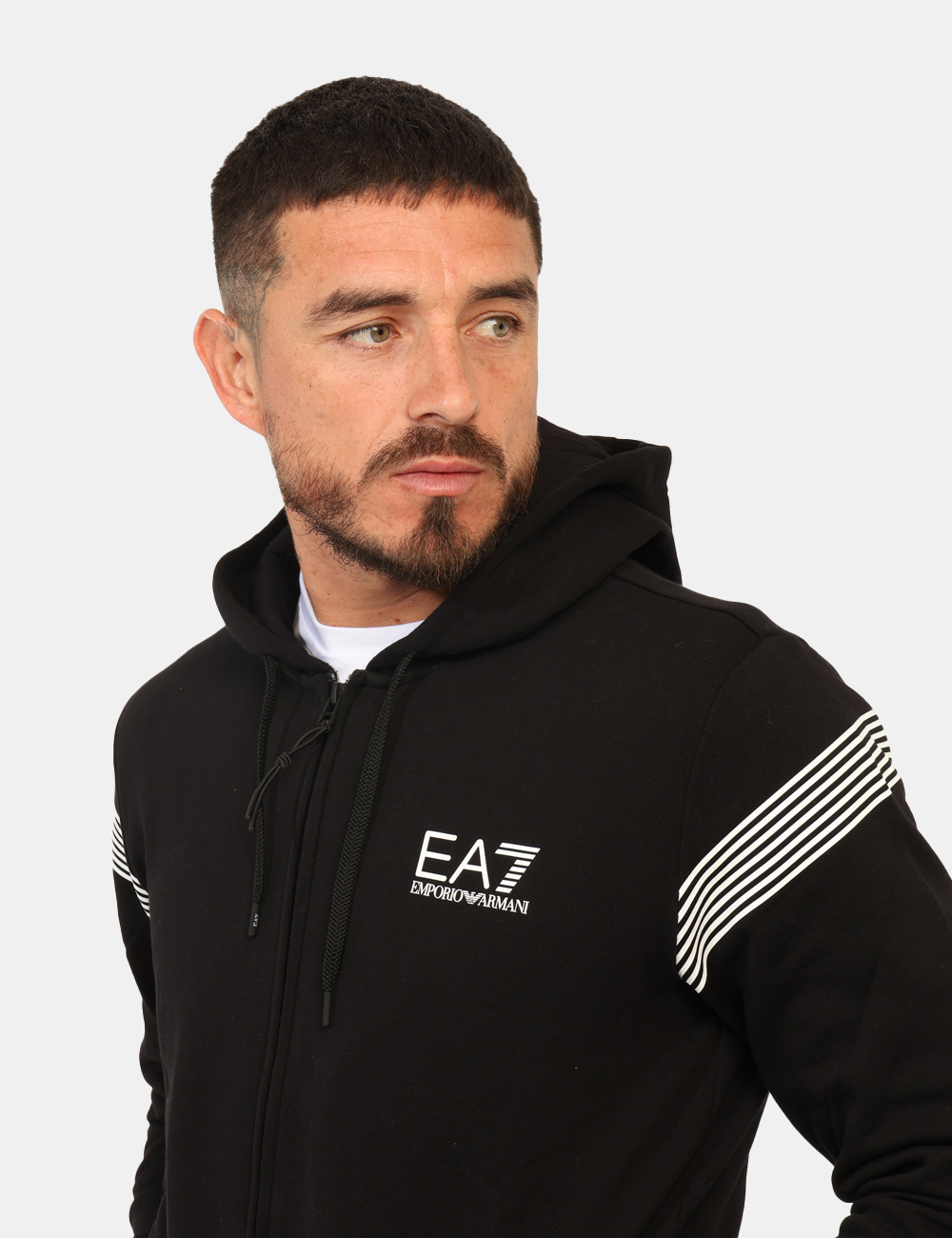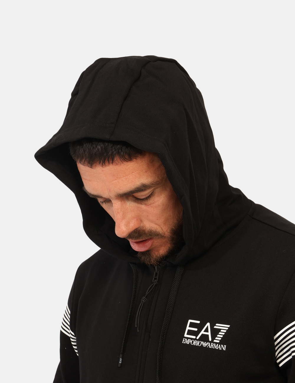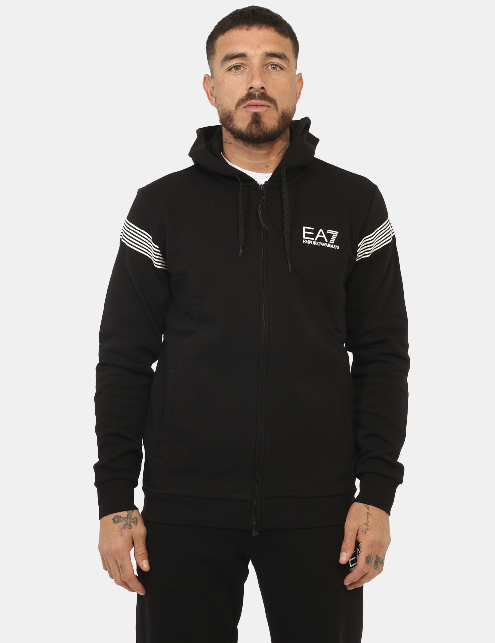 Felpa con cappuccio, interno felpato, in total nero con logo brand bianco e dettagli coordinati. Presenti tasche a taglio trasversale. La vestibilità è morbida e pratica grazie a zip sul fronte. La felpa è adatta per occasioni casual e facilmente combinabile. Troppo comoda per poterne fare a meno.