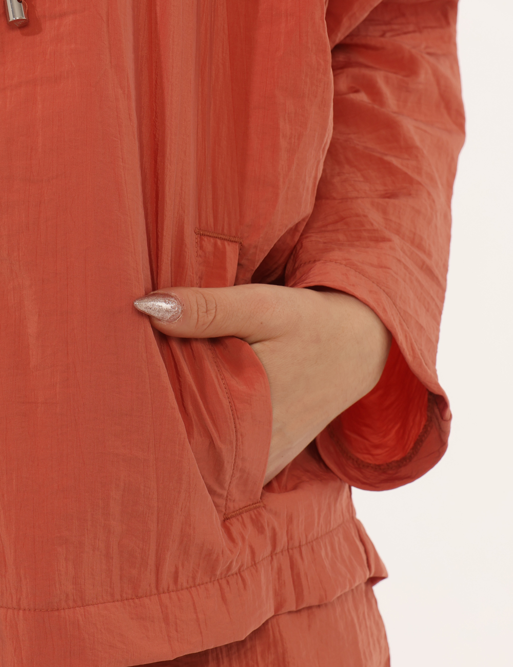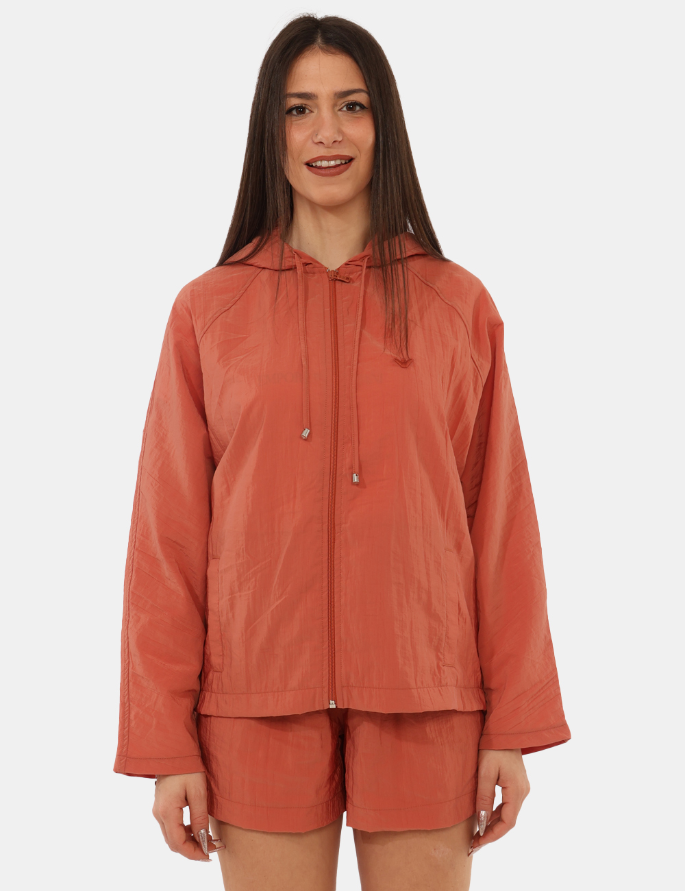 La Felpa con in tonalità mattone, cappuccio, tasche, zip sul fronte è perfetta nel tempo libero d’estate, ad esempio la sera dopo una giornata al mare o per una passeggiata all’aperto. Puoi abbinarla a shorts coordinati e infradito per un look sporty chic, oppure indossarla sopra il costume per un outfit pratico e ricercato.