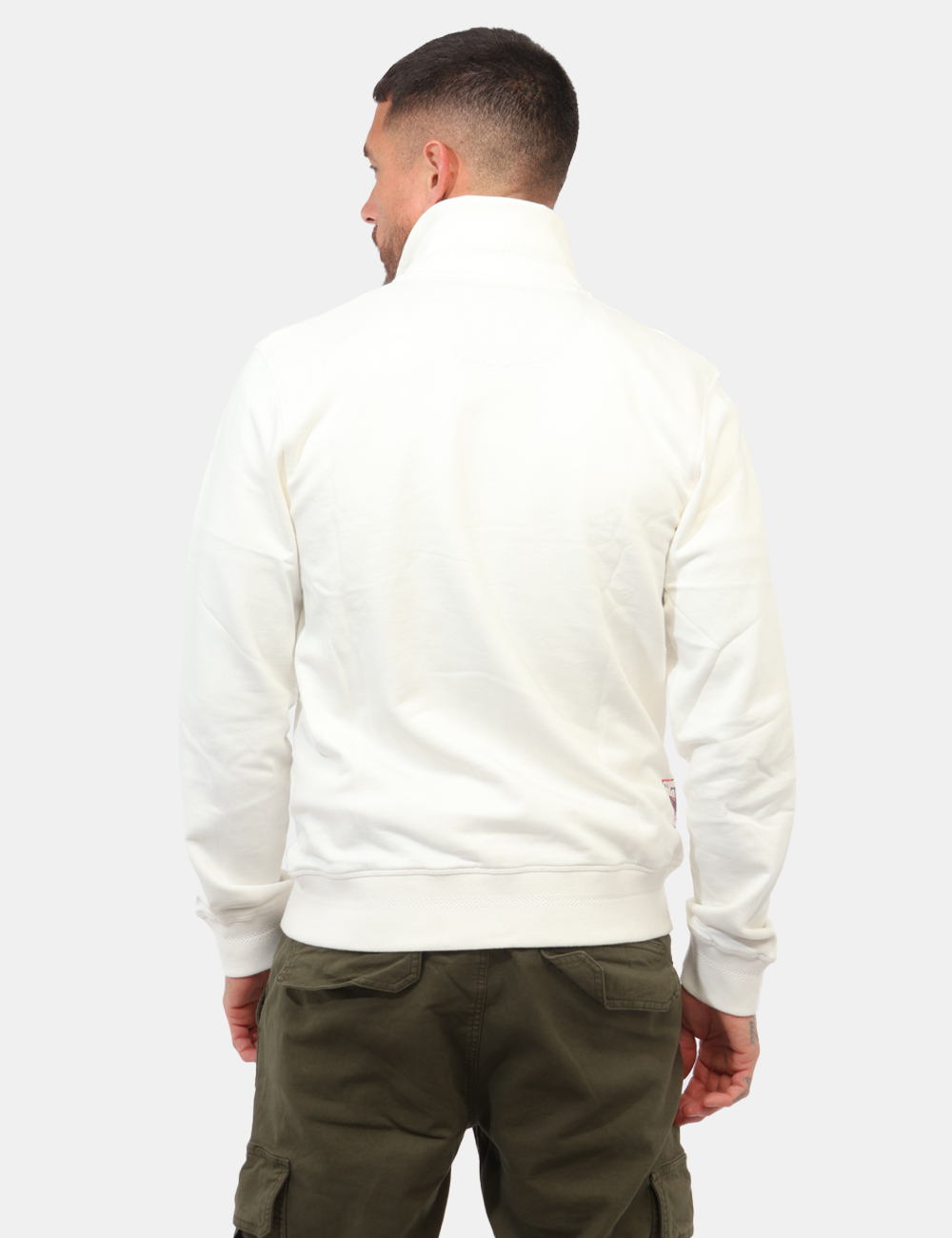Questa felpa da uomo adatta in tutte le stagioni si distingue per i suoi dettagli distintivi: la cerniera blu e rossa aggiunge un tocco di colore deciso e contemporaneo, mentre il ricamo blu completa il design con un elemento elegante e riconoscibile. La vestibilità regolare garantisce un fit comodo e versatile: il modello è alto 187 cm e indossa una taglia L.