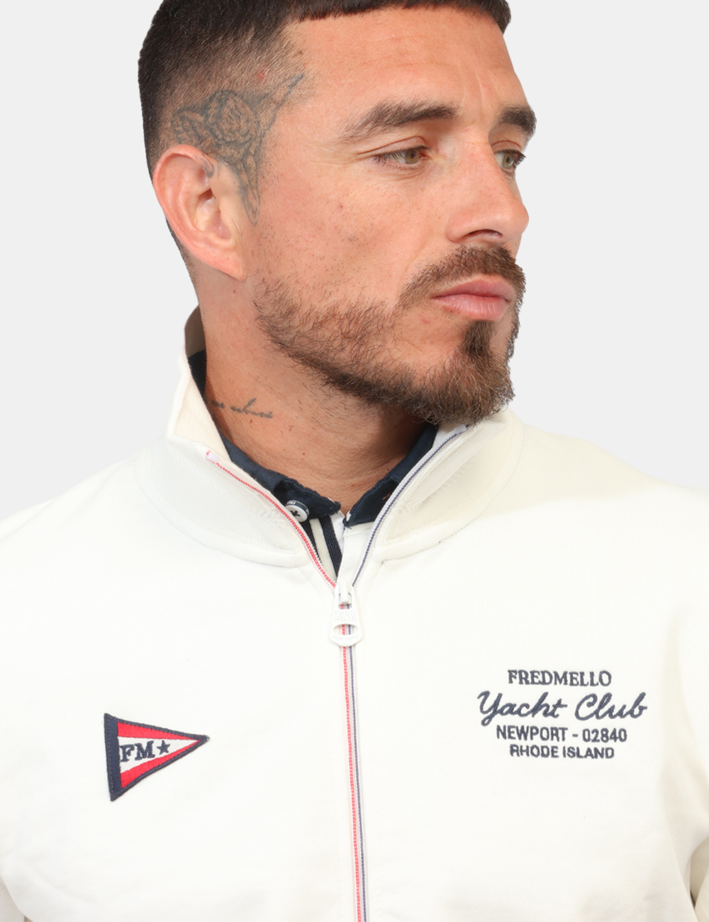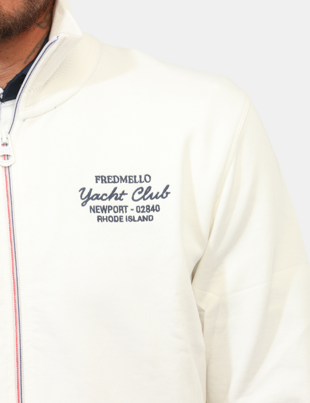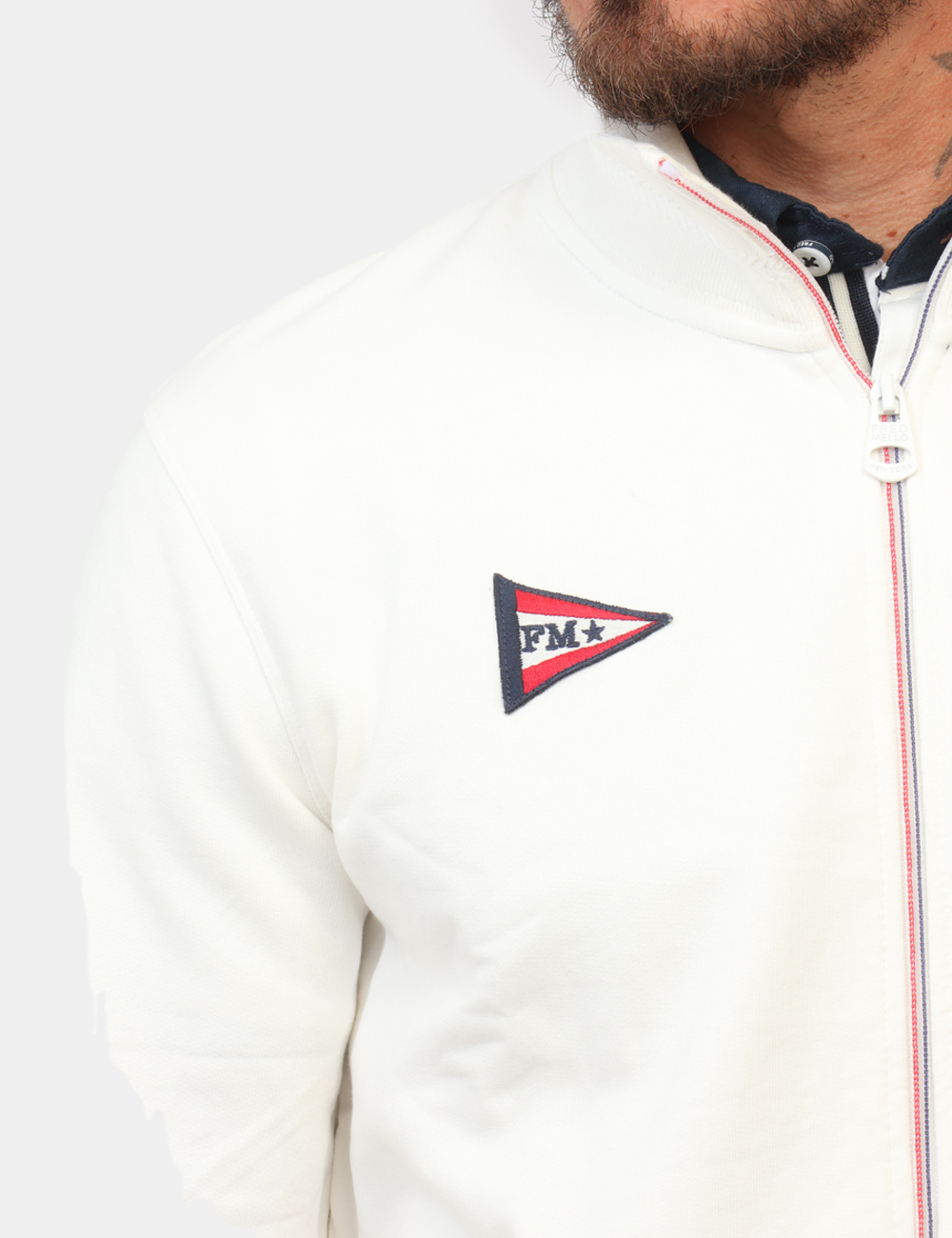 La Felpa con cerniera blu e rossa , ricamo blu è una scelta ideale per chi desidera un capo pratico ma con personalità, capace di distinguersi grazie a dettagli ricercati.