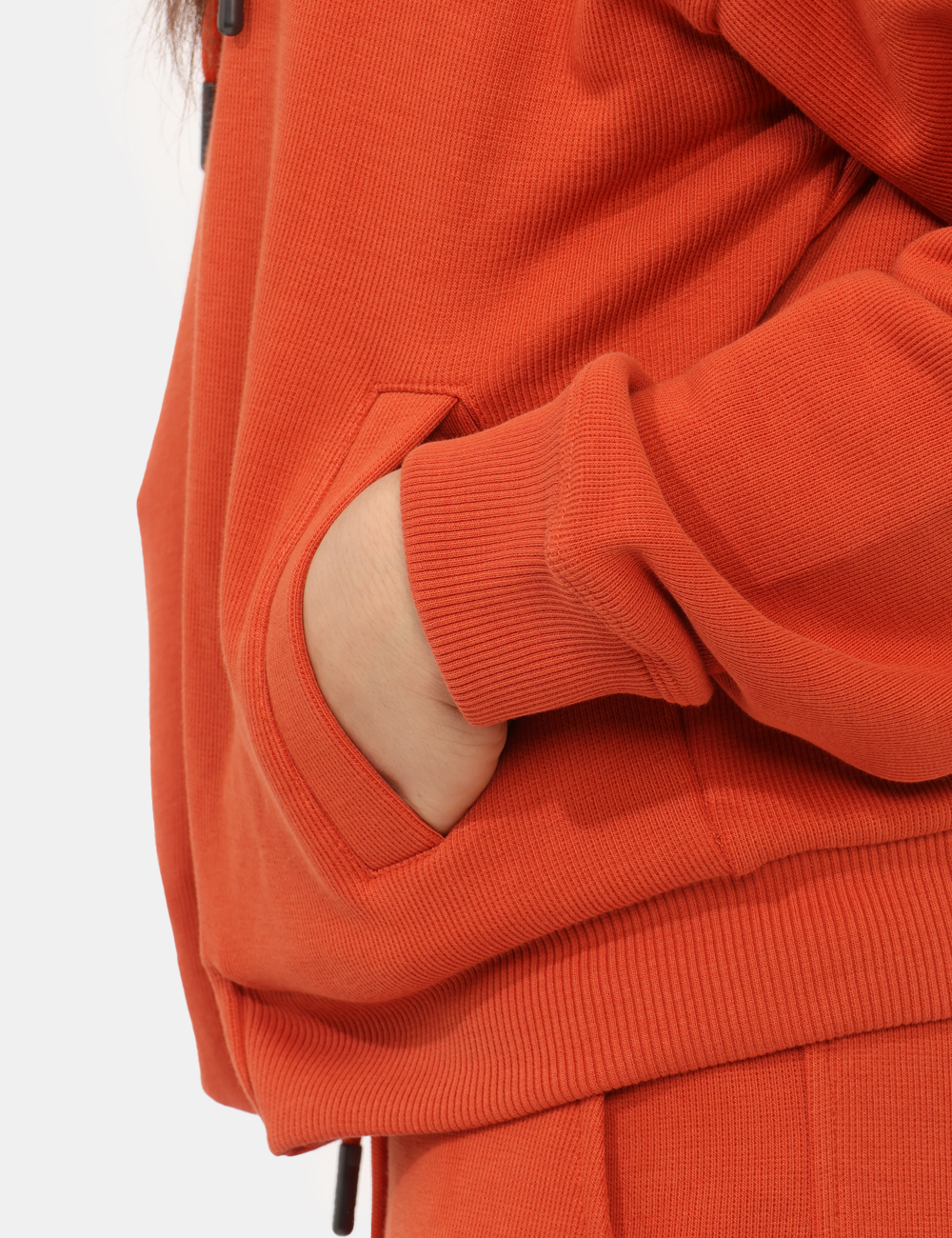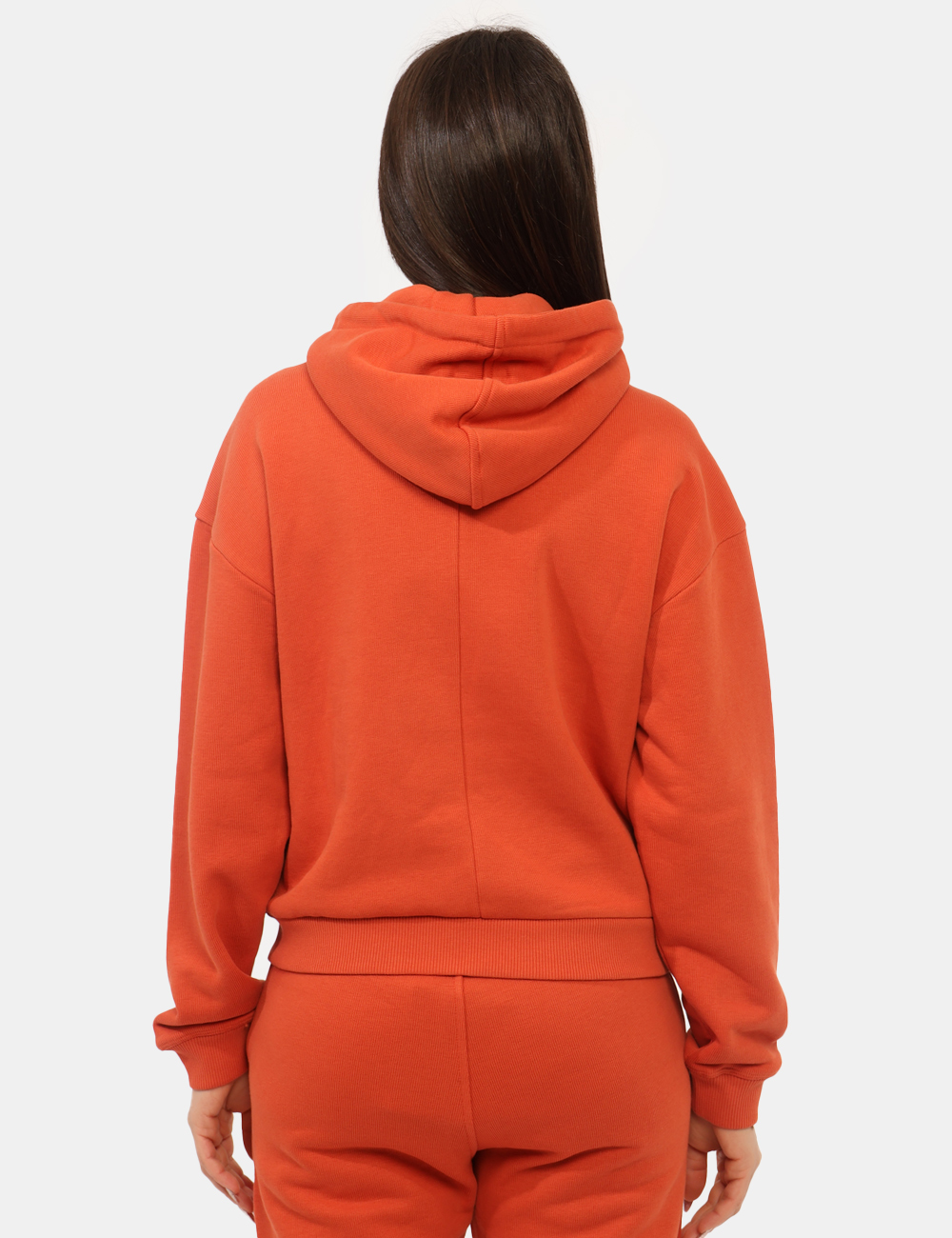 Il design unisce praticità e carattere: Felpa in total arancione, patch logo brand, tasche, interno garzato, cappuccio e zip sul fronte. Le tasche e la zip frontale aggiungono funzionalità, mentre il cappuccio completa il look con un tocco sportivo e versatile.
