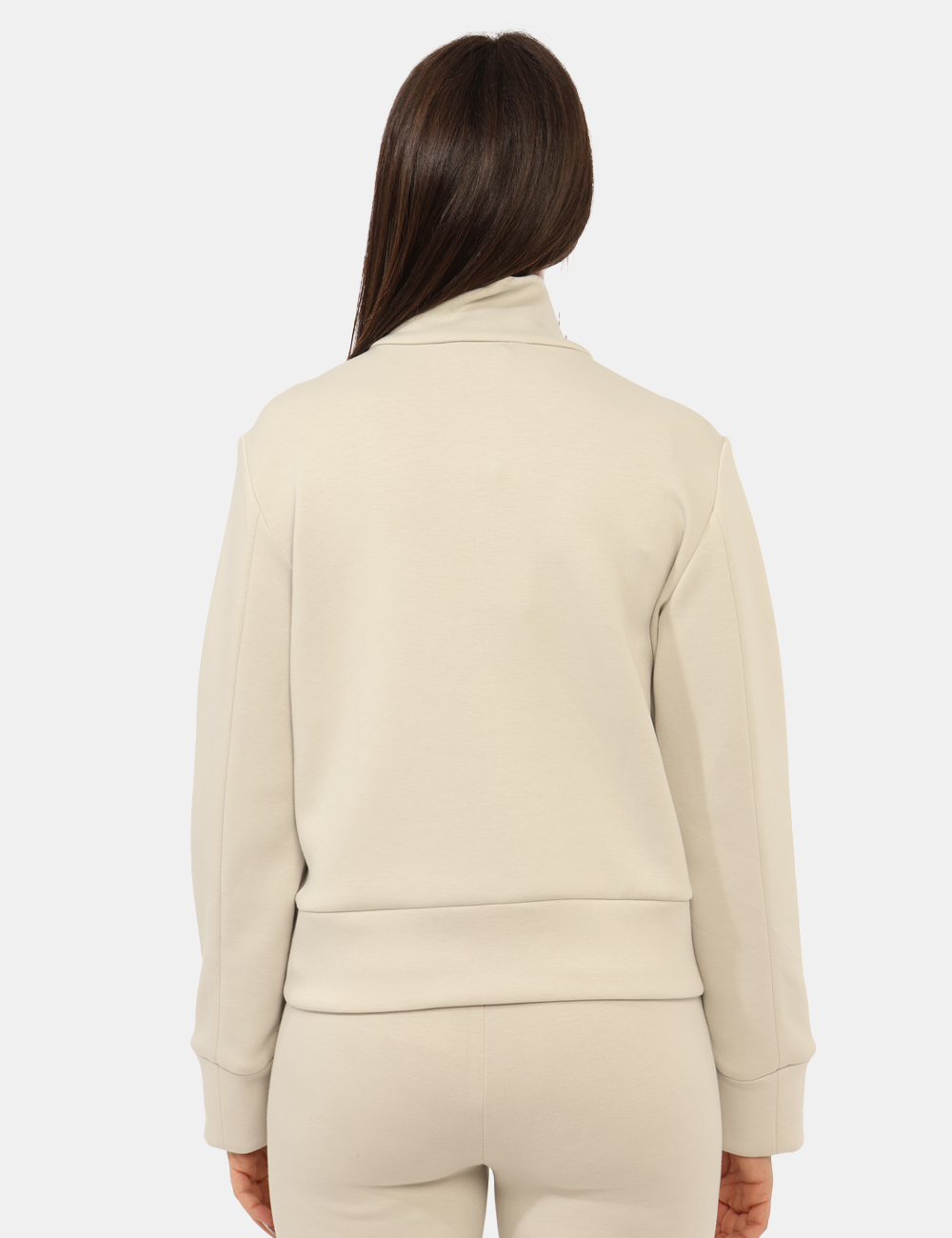 Realizzata in 81% poliestere, 15% viscosa e 4% elastane, offre una piacevole sensazione di morbidezza e una vestibilità regolare che valorizza la silhouette senza costringere. La modella è alta 165 cm e indossa la taglia S. Il design è completato da tasche, logo brand, zip sul fronte, elementi che la rendono pratica e riconoscibile, ideale per chi ama uno stile dinamico e contemporaneo. Pezzo unico di campionario.