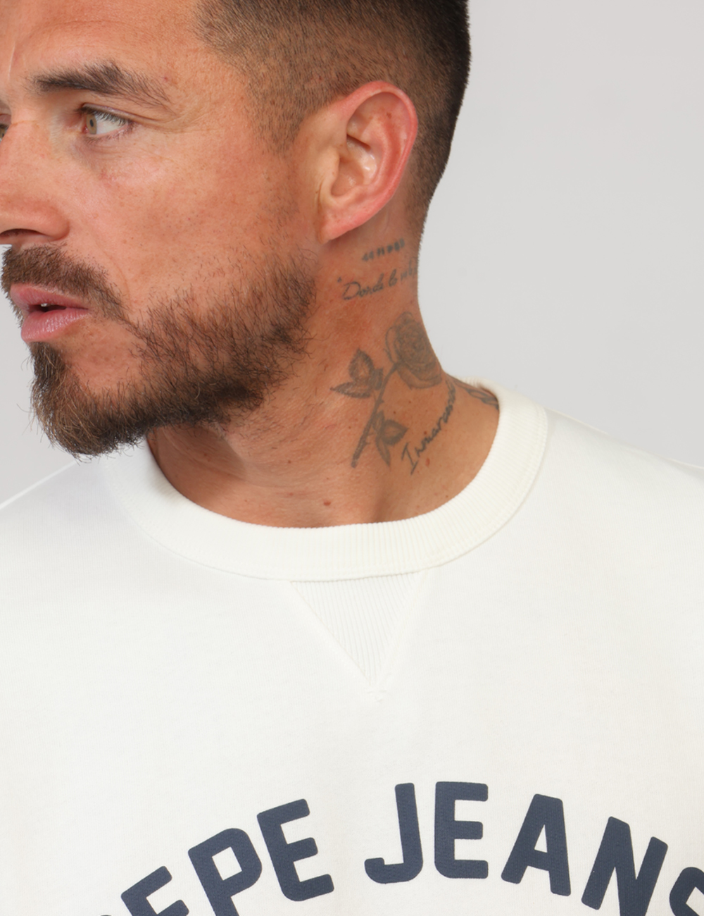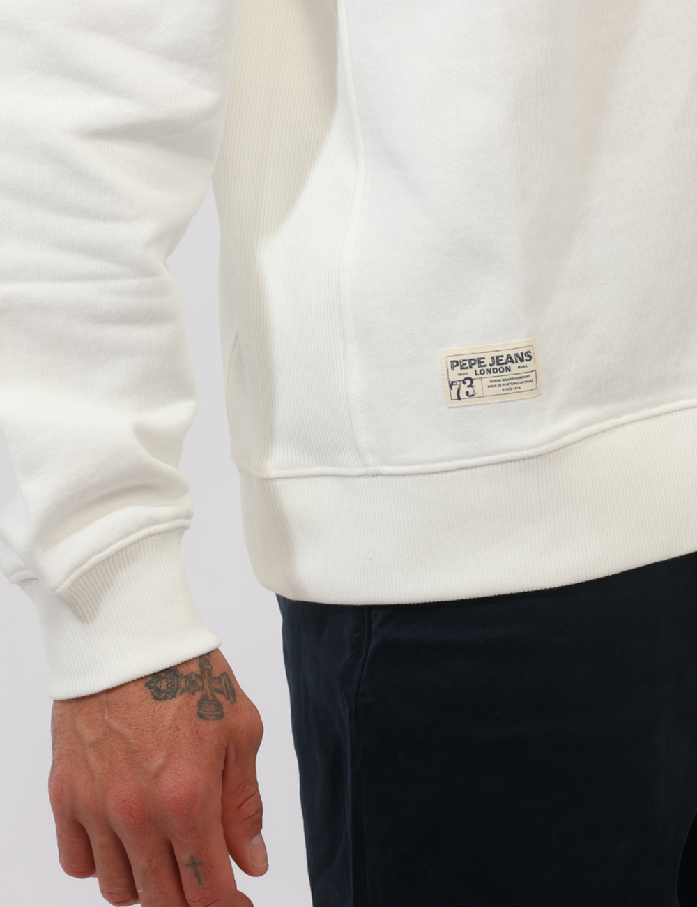 La Felpa PEPE JEANS Bianca da uomo è il capo ideale per chi cerca uno stile pulito, contemporaneo e facilmente abbinabile in ogni occasione.