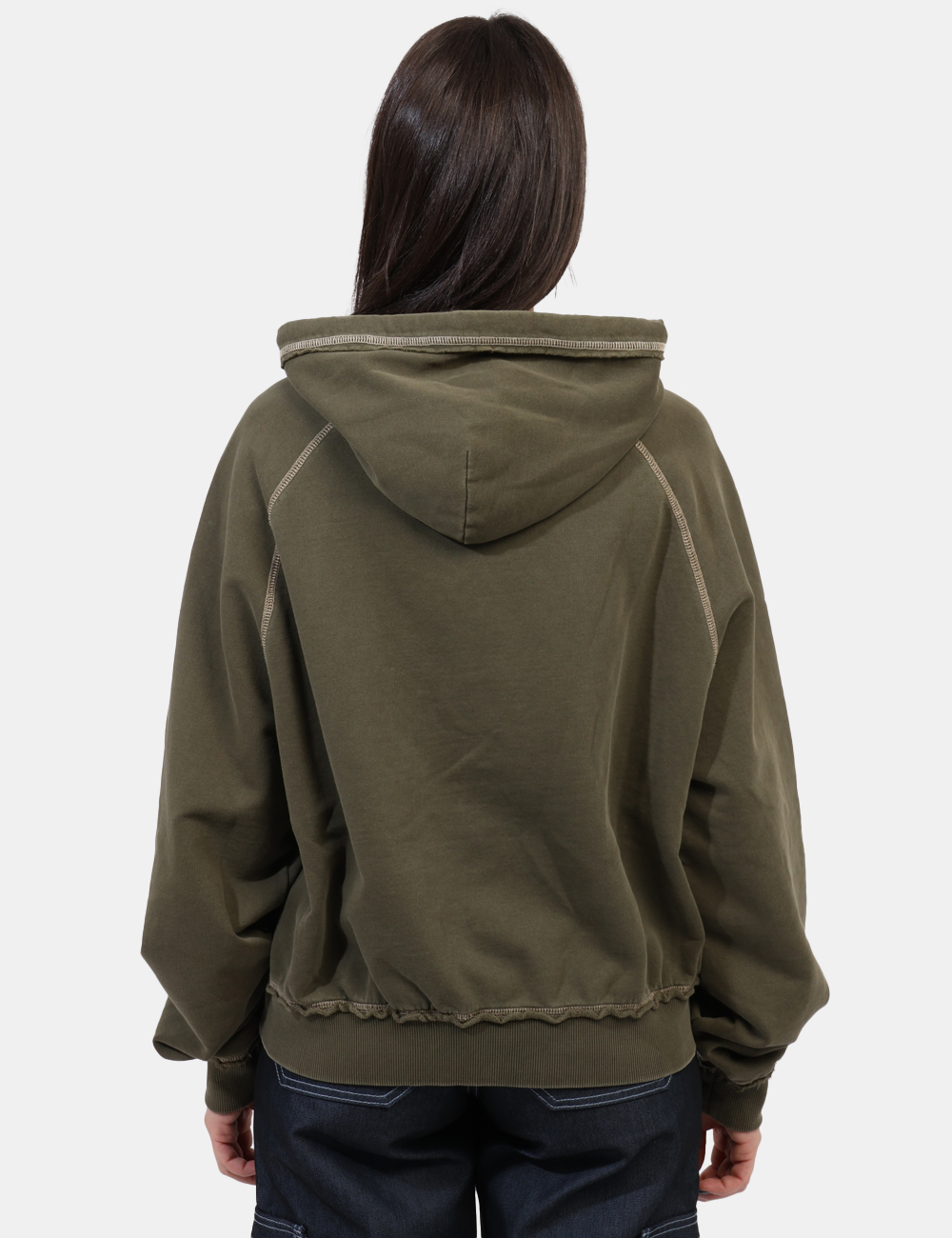 La modella è alta 165 cm e veste la taglia S. La vestibilità del capo è regolare. L’articolo è garzato.
