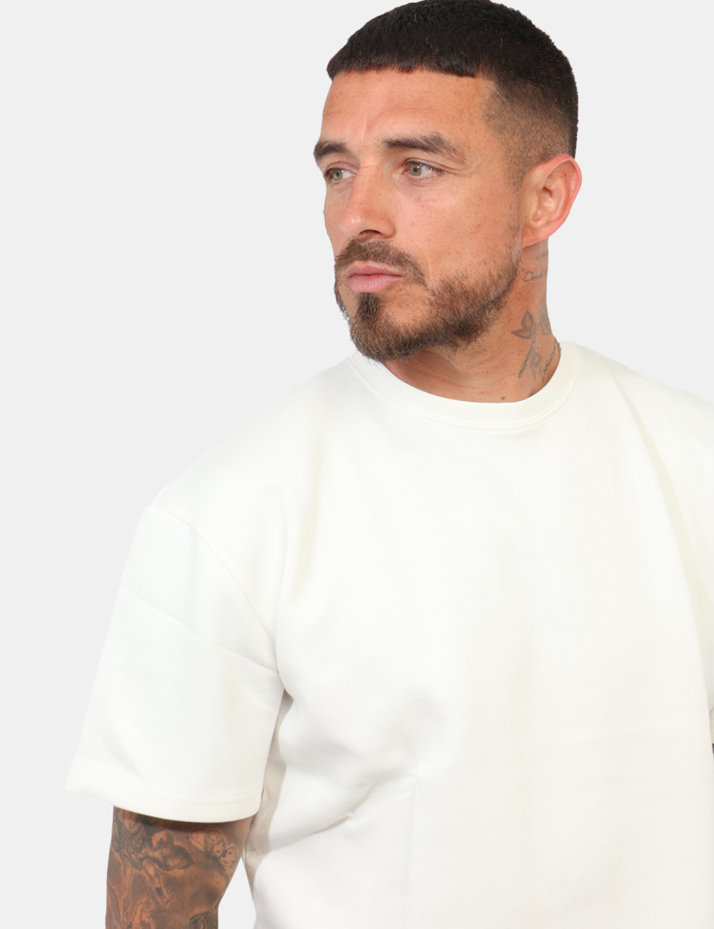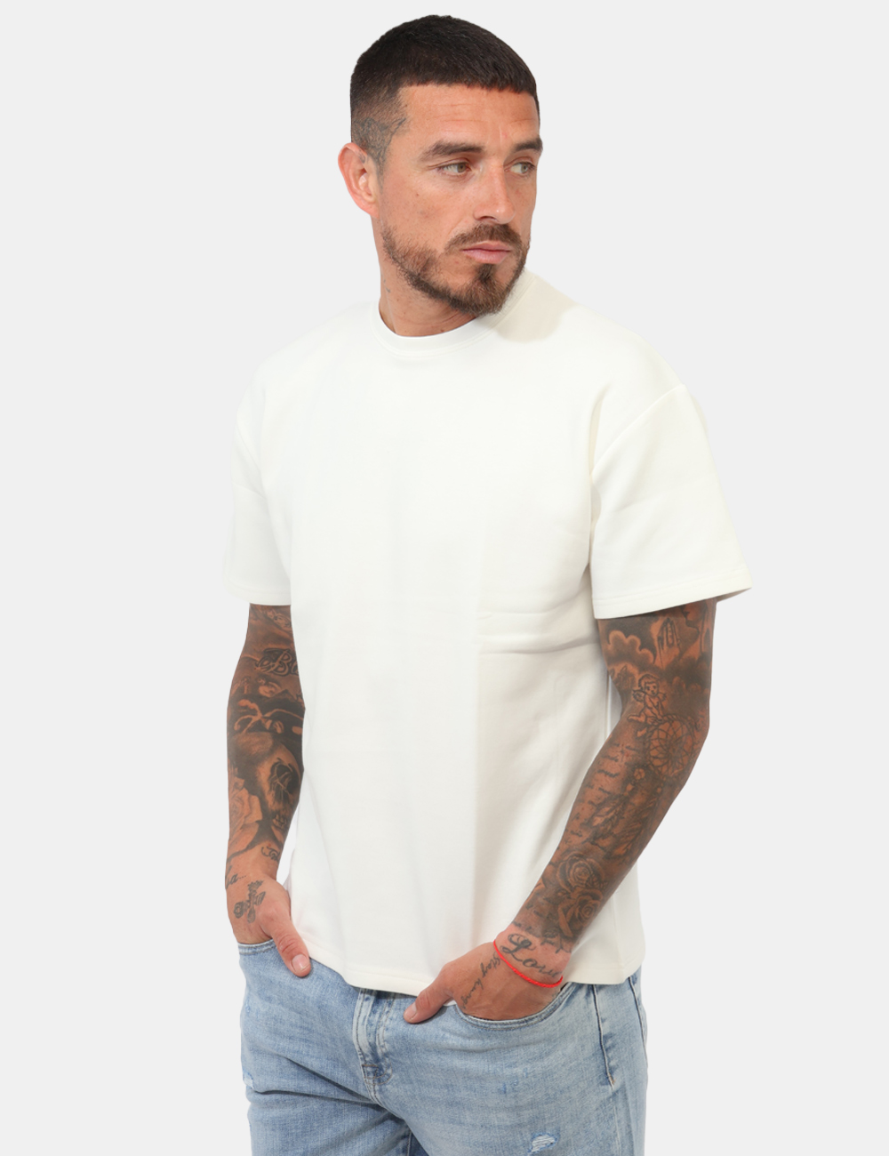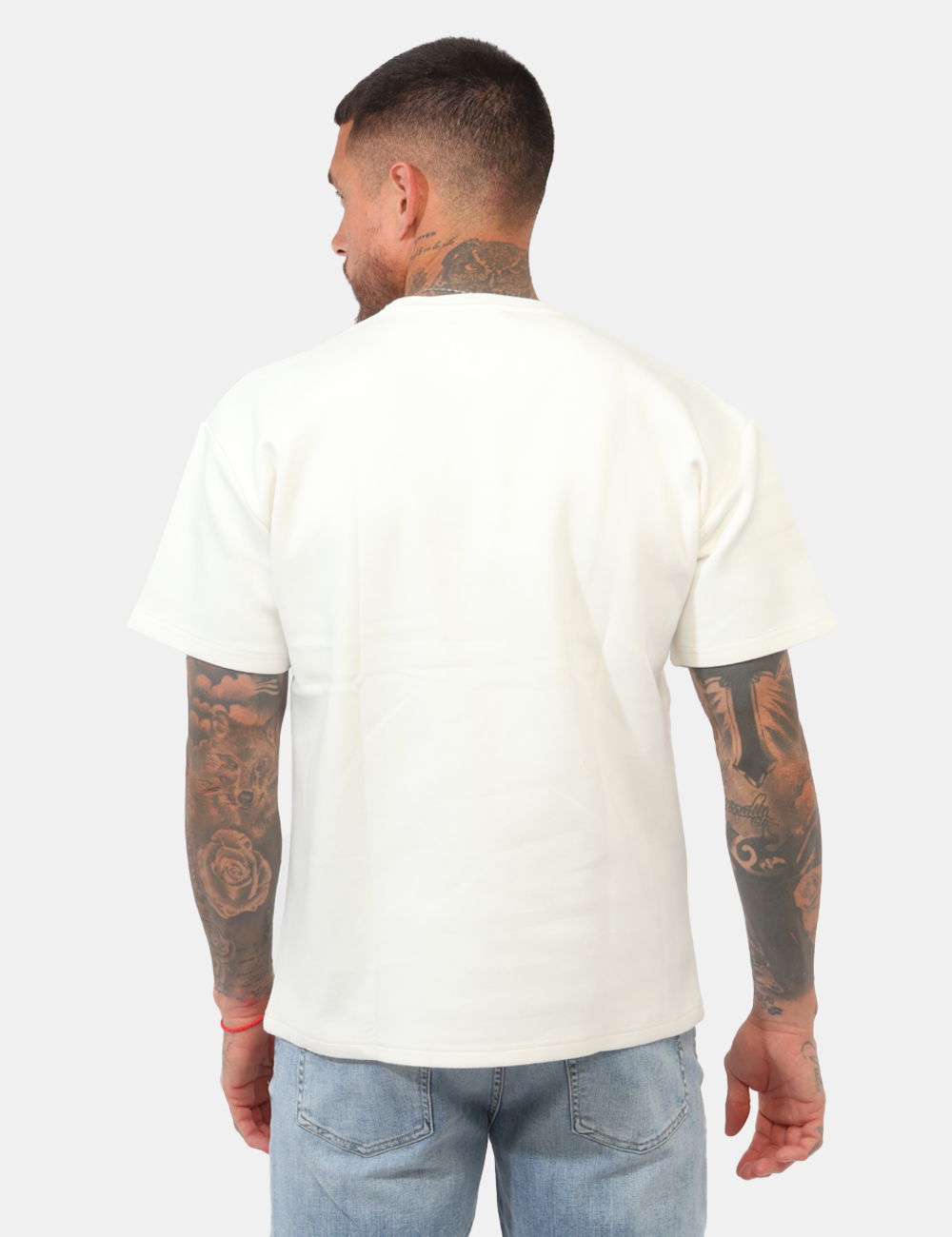 Il design si distingue per la mezza manica e il girocollo, una combinazione moderna che rende questo capo versatile e perfetto per un look casual ma curato. La vestibilità è regolare: il modello è alto 187 cm e indossa la taglia L, garantendo una linea equilibrata e comoda da indossare ogni giorno.