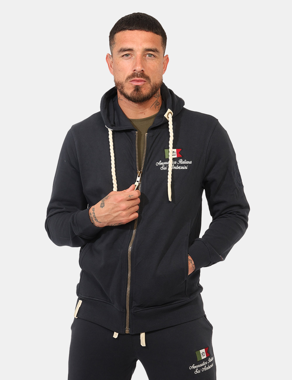Felpa classica garzata, con cappuccio e polsini, in total nero con logo brand ricamato bianco. Presenti tasche a taglio trasversale. La vestibilità è morbida e pratica grazie a zip sul fronte. Aggiungila al tuo guardaroba e saprai sempre cosa indossare.