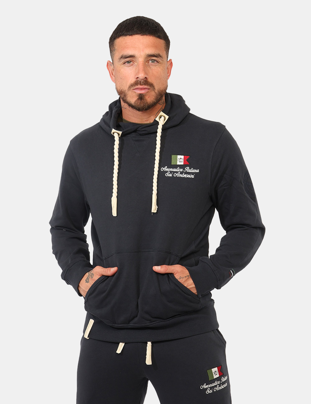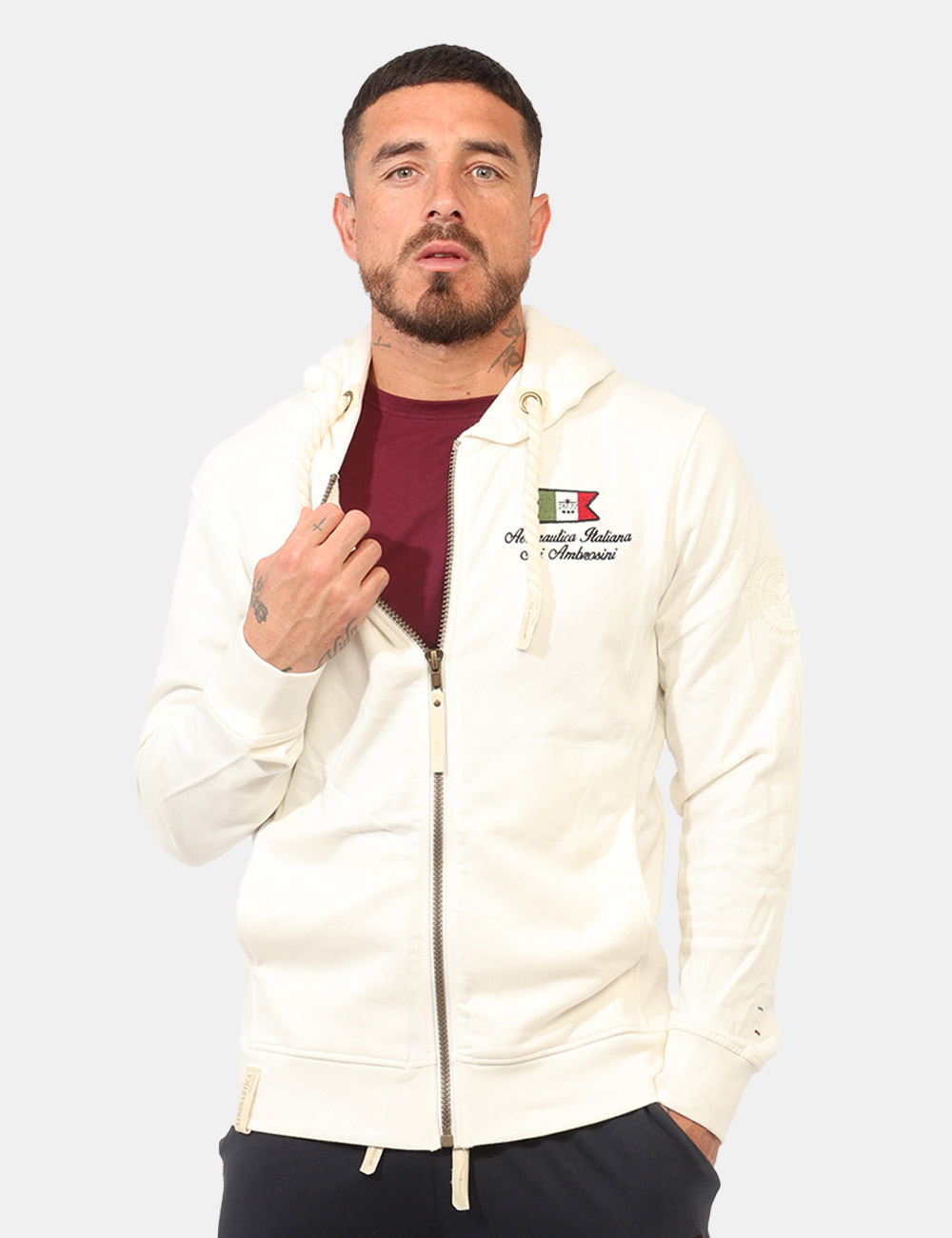 Il modello è alto 187 cm e indossa la taglia L. La vestibilità del capo è regolare.