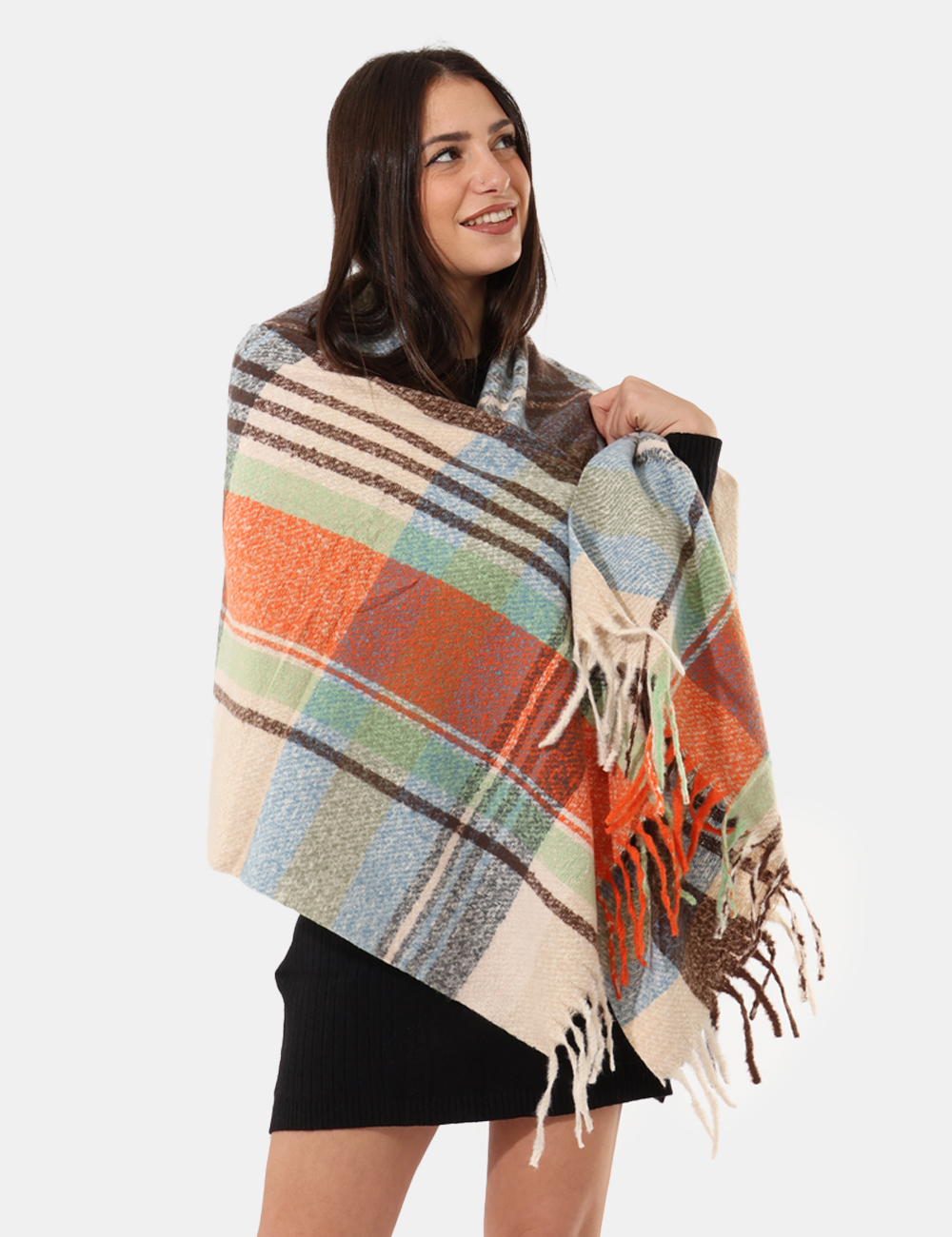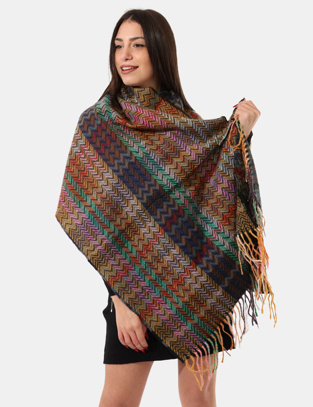 Foulard pieghettato su fantasia floreale tendente al marrone/viola. L’indossatura è pratica e maneggevole. Il foulard è adatto per occasioni casual e facilmente combinabile. Indossa quest’accessorio e perfeziona il tuo outfit.