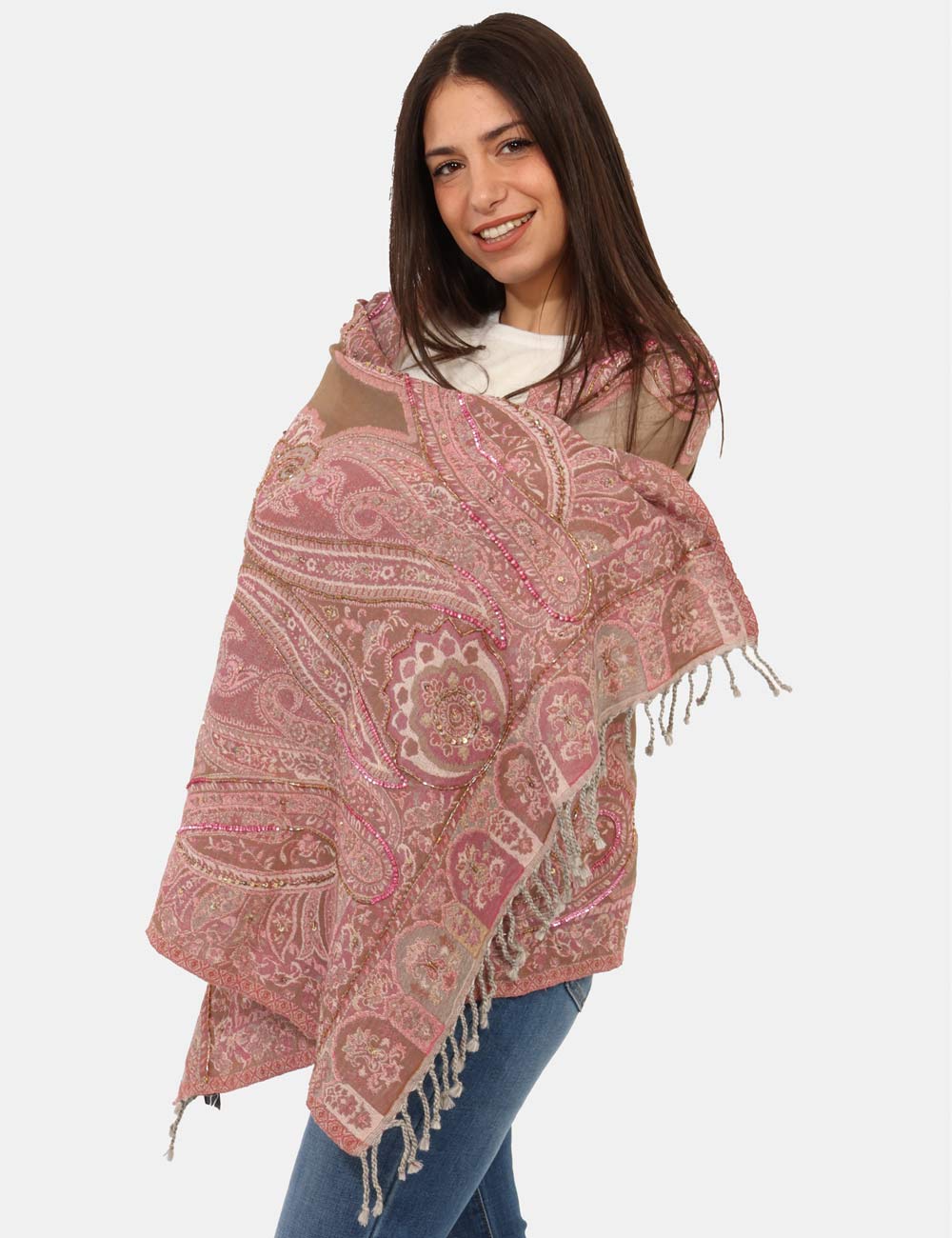 Ampio foulard su fantasia floreale tendente al marrone. L’indossatura è pratica e maneggevole. Il foulard è adatto per occasioni casual e facilmente combinabile. Indossa quest’accessorio e perfeziona il tuo outfit.