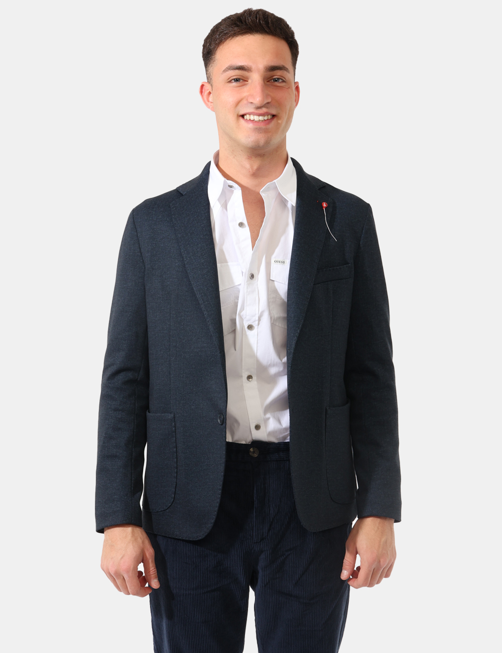 Giacca elegante in total blu denim scuro, con tasche a toppa più taschino. La vestibilità è morbida e pratica grazie a bottoni ad asola in tinta. La giacca è adatta per occasioni casual/eleganti. Indossala per essere impeccabile.