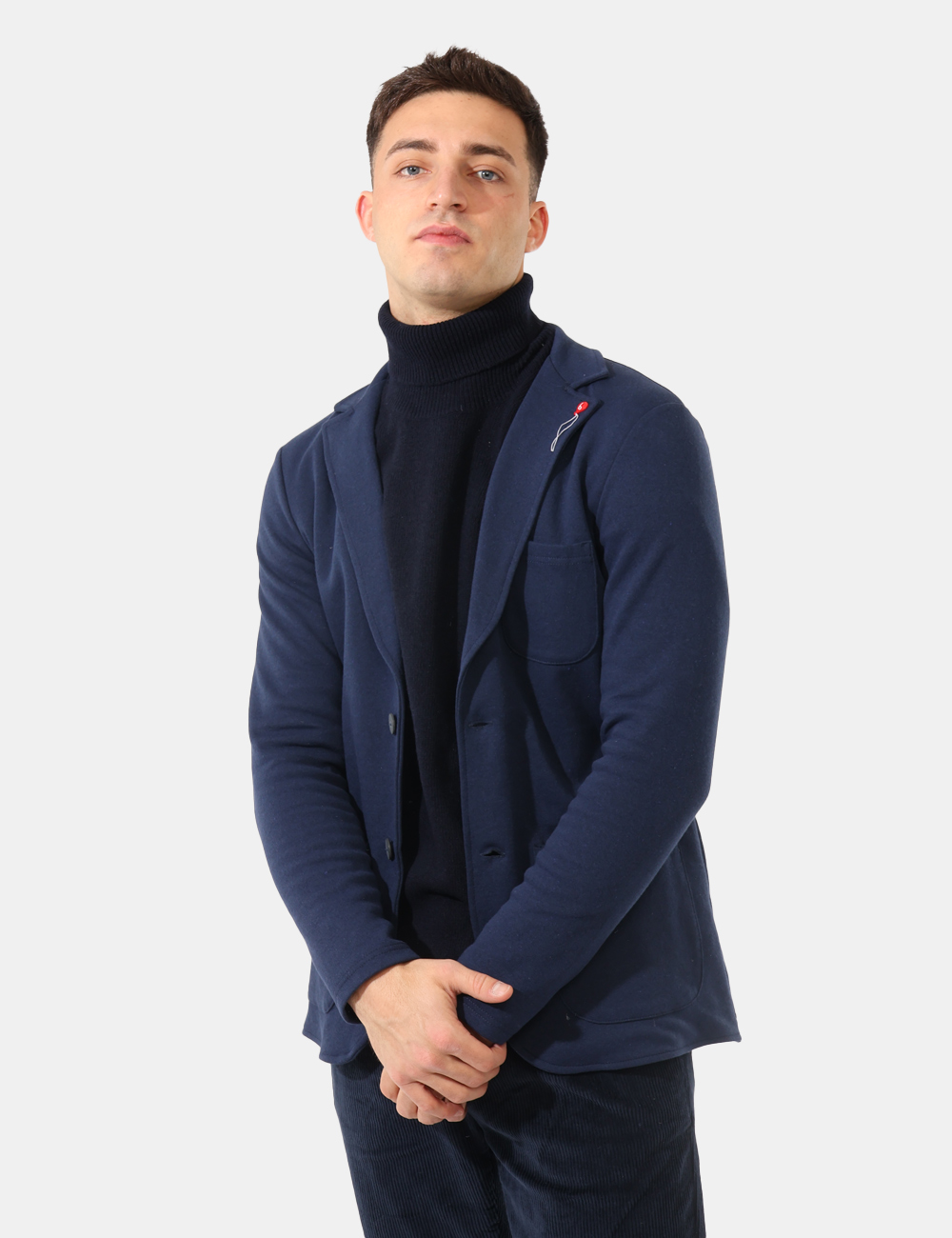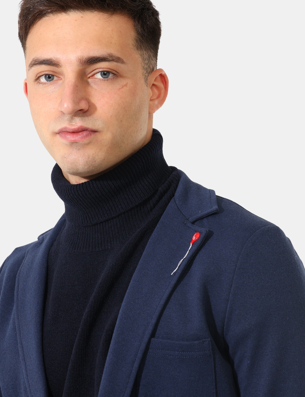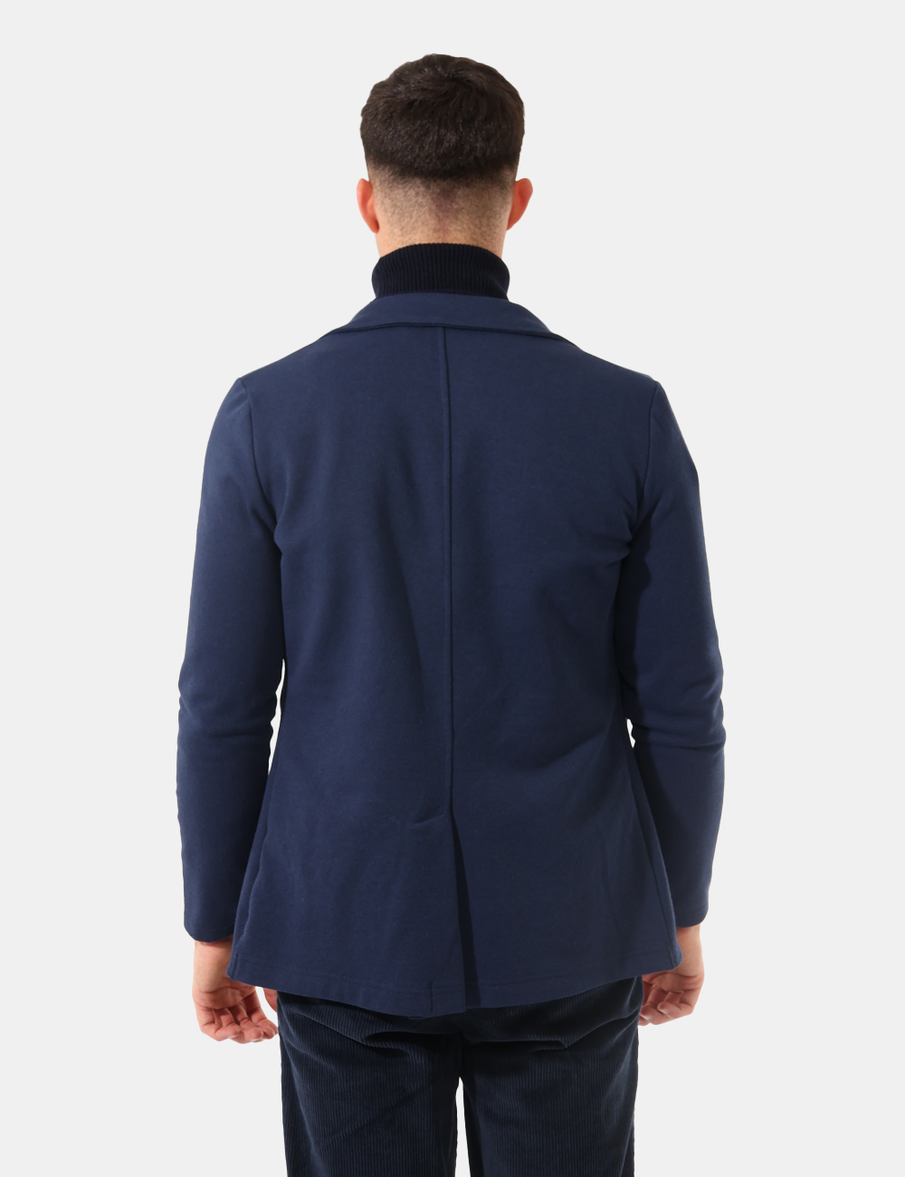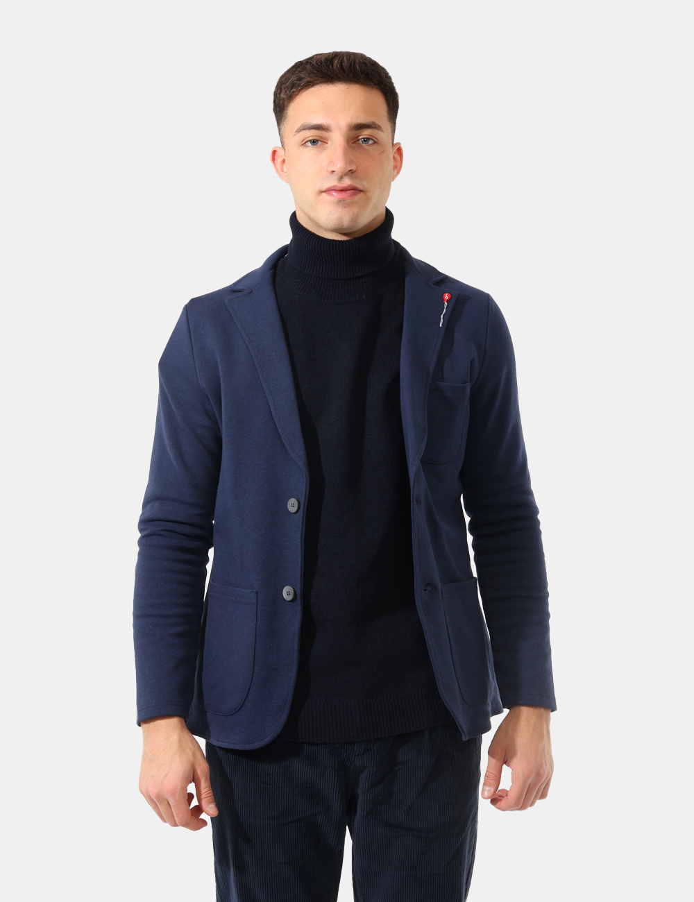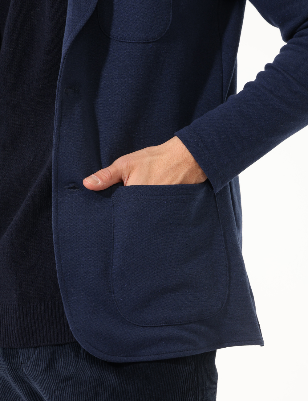 Giacca casual in maglina, total blu navy con tasche a toppa più taschino. La vestibilità è morbida e pratica grazie a bottoni ad asola in tinta. La giacca è adatta per occasioni casual e facilmente combinabile. Aggiungila al tuo guardaroba e saprai sempre cosa indossare.