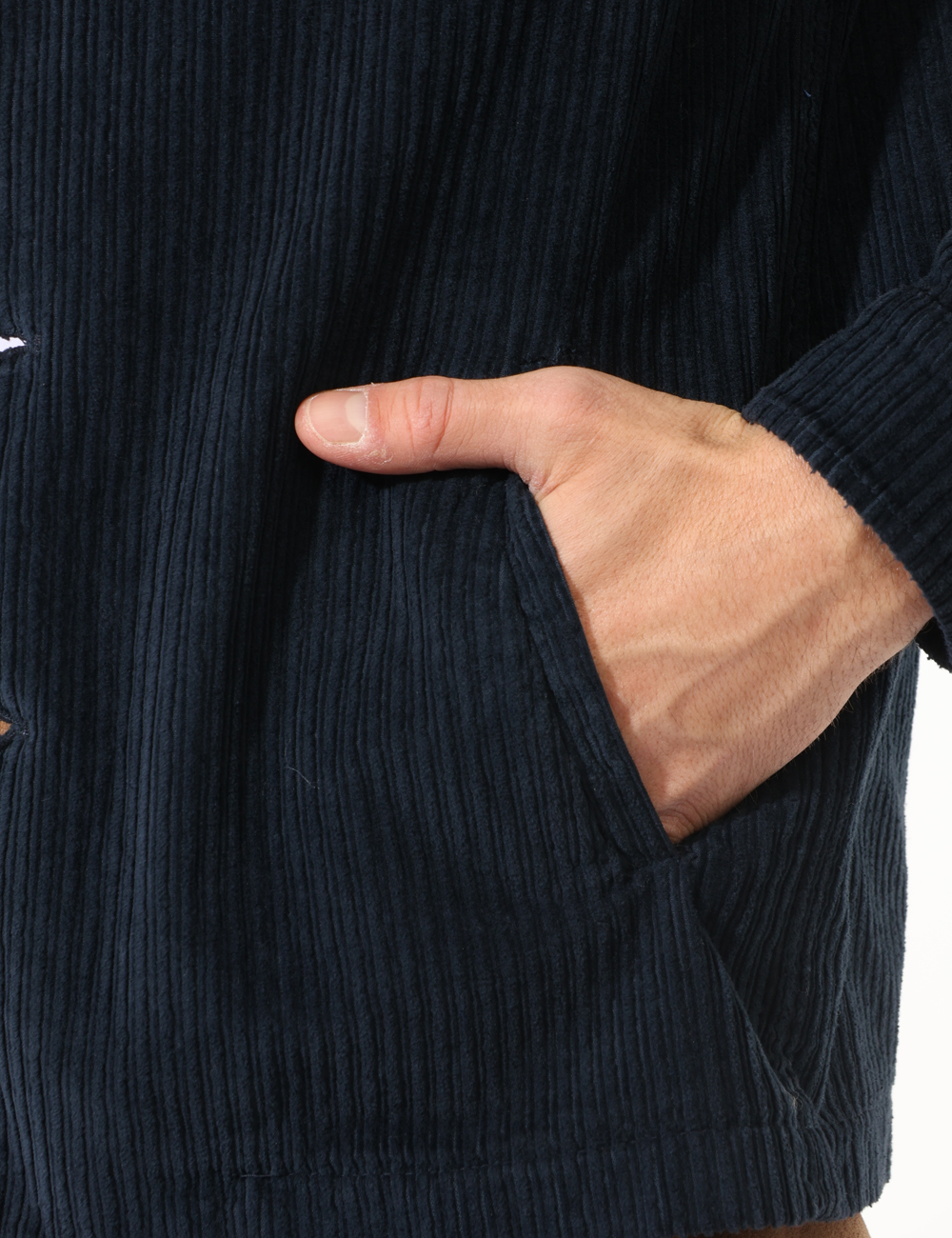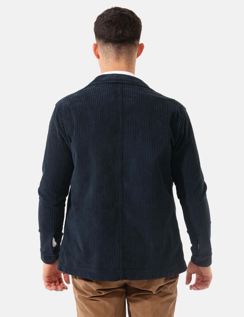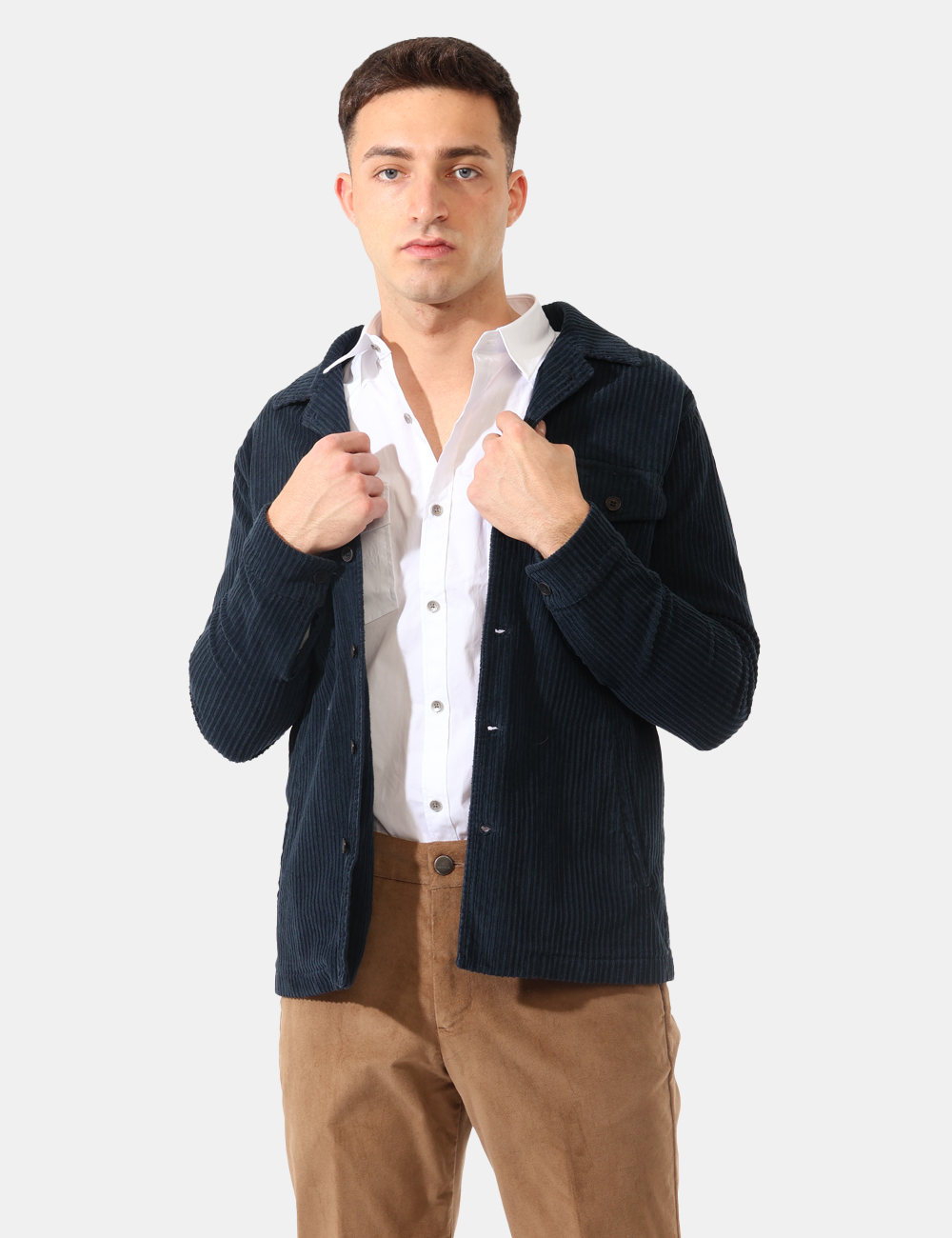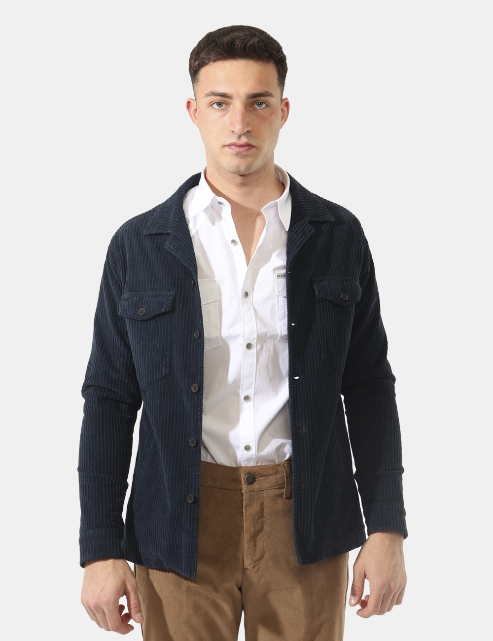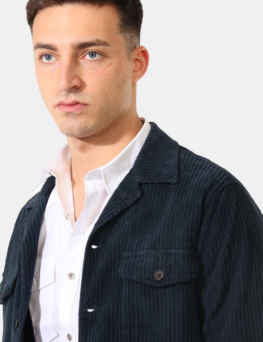 Giacca simil camicia, in velluto total blu navy con doppio taschino a toppa. La vestibilità è morbida e pratica grazie a bottoni ad asola in tinta. La giacca è adatta per occasioni casual e facilmente combinabile. Indossala per spiccare con stile.