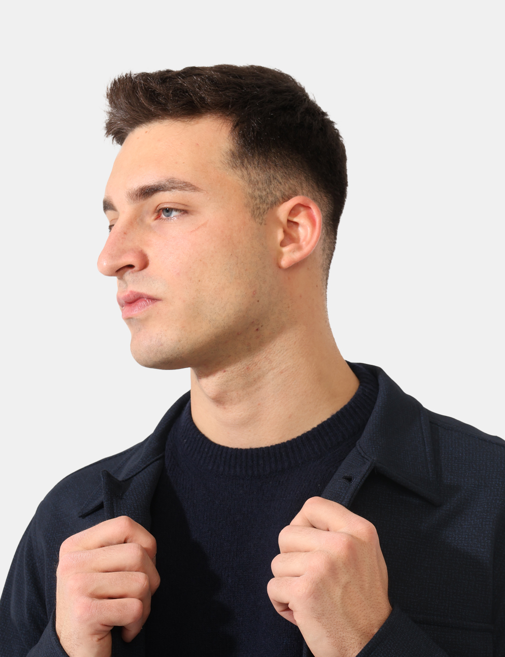 Giacca elegante in total blu, con tasche a taglio trasversale e taschini a toppa. La vestibilità è morbida e pratica grazie a bottoni ad asola in tinta. La giacca è adatta per occasioni casual/eleganti. Indossala per essere impeccabile.