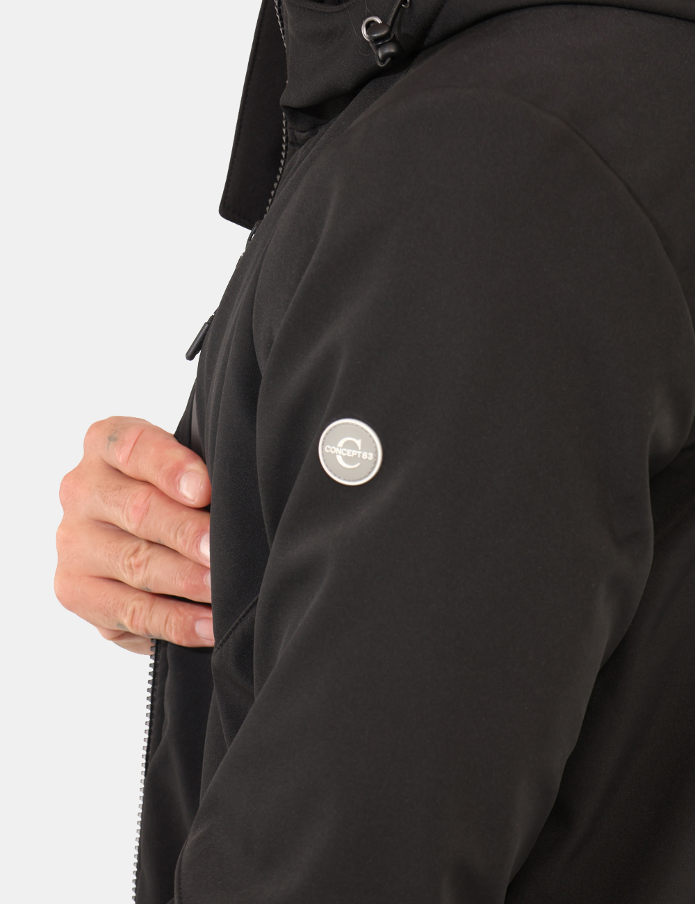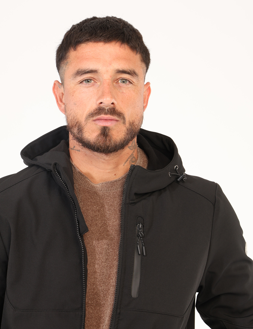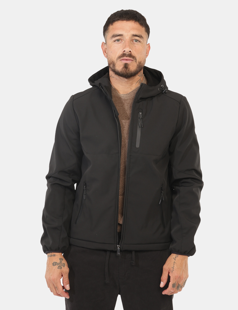 Giacca casual/sportiva, con cappuccio e in total nero, più interno felpato e varie tasche. La vestibilità è morbida e pratica grazie a zip sul fronte. La giacca è adatta per occasioni casual e facilmente combinabile, oltre che impermeabile. Aggiungila al tuo guardaroba e saprai sempre cosa indossare.