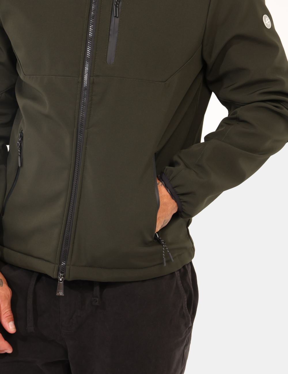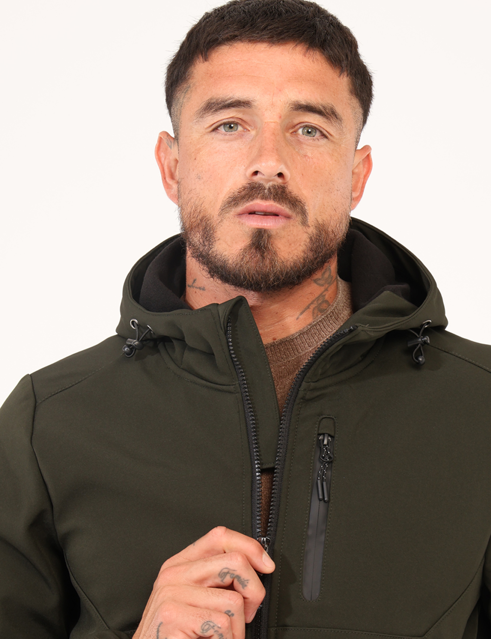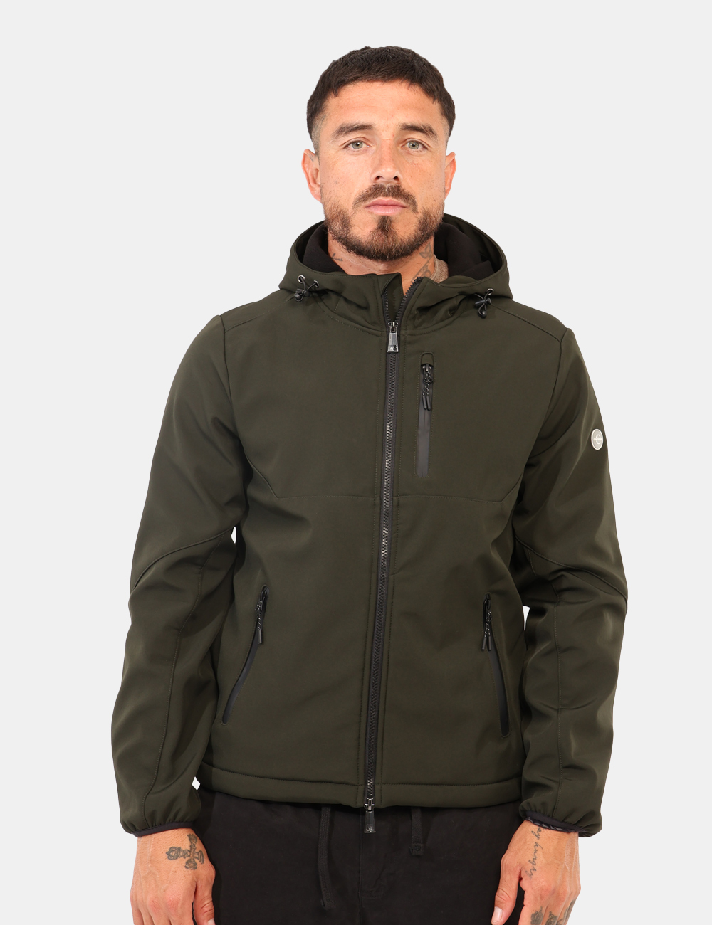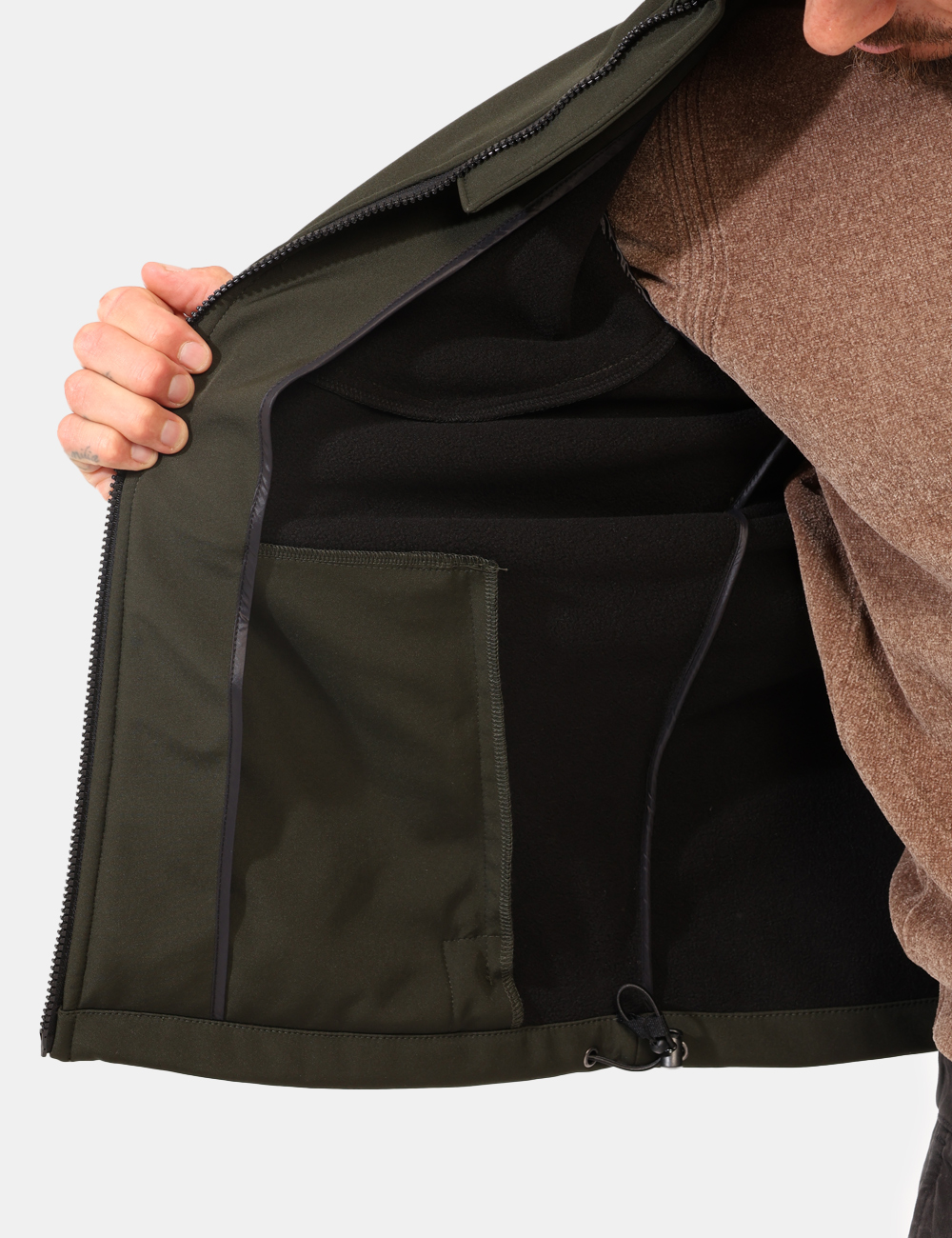 Giacca casual/sportiva, con cappuccio e in total verde militare, più interno felpato e varie tasche. La vestibilità è morbida e pratica grazie a zip sul fronte. La giacca è adatta per occasioni casual e facilmente combinabile, oltre che impermeabile. Aggiungila al tuo guardaroba e saprai sempre cosa indossare.