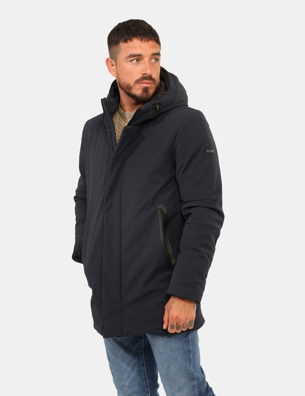 Il modello è alto 178 cm e veste la taglia 50. La vestibilità del capo è regolare.