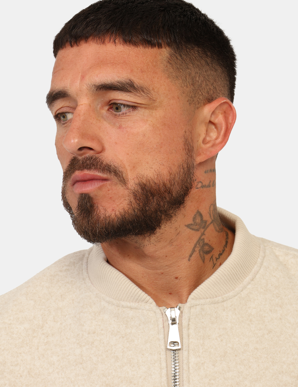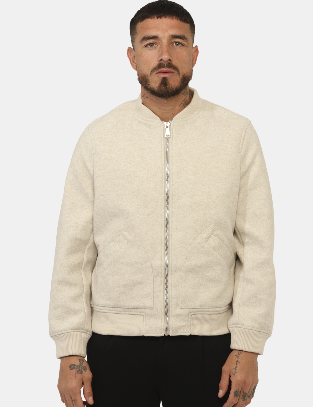 Giacca in tessuto total panna, con colletto alla coreana e tasche a taglio trasversale. La vestibilità è morbida e pratica grazie a zip sul fronte. La giacca è adatta per occasioni casual e facilmente combinabile. Affronta il tuo inverno con stile.