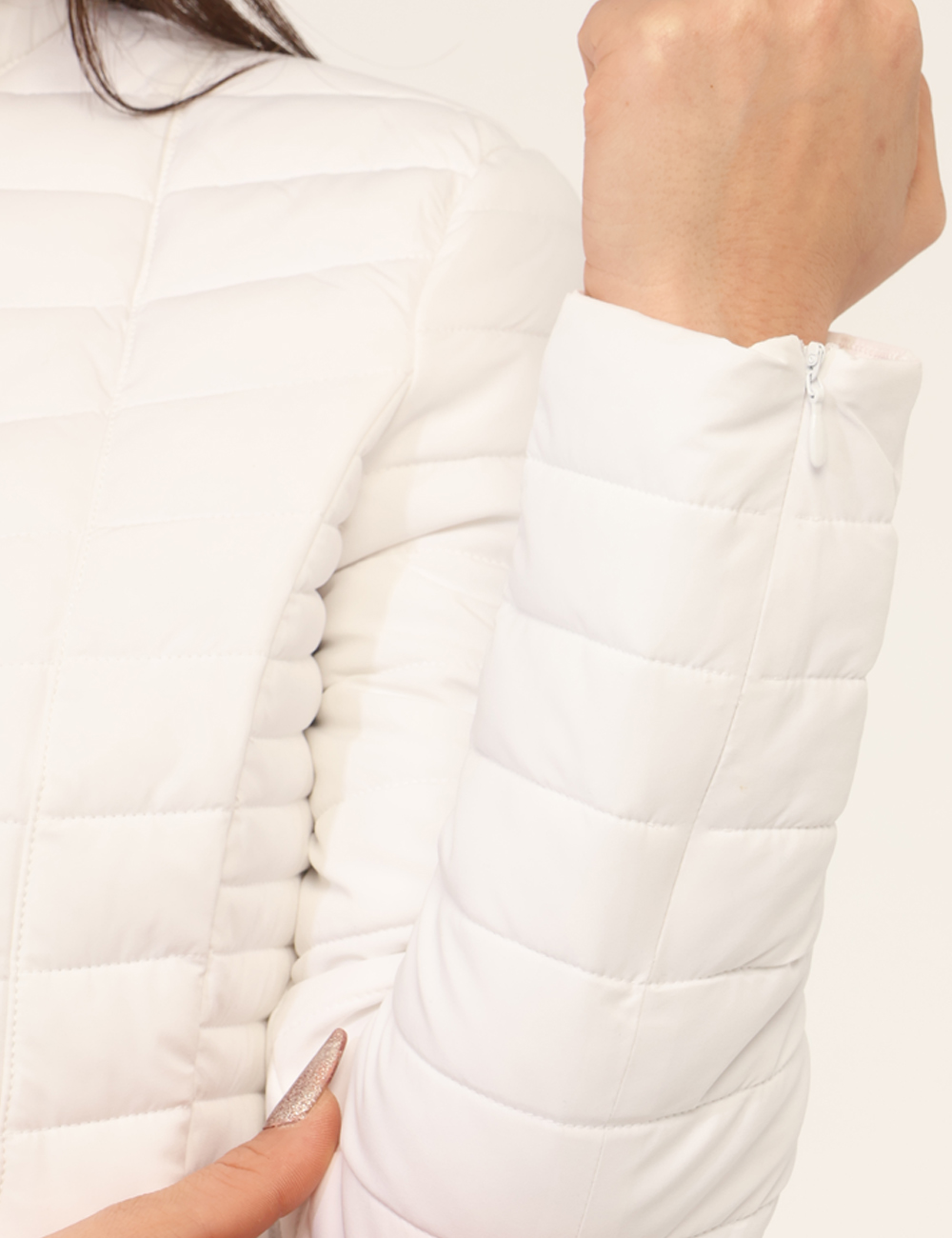 Il design è definito da tasche, zip e collo alto, dettagli funzionali che uniscono praticità e stile. Le tasche aggiungono comfort nella quotidianità, la zip sottolinea la linea dinamica del capo e il collo alto dona personalità e struttura. La vestibilità è regolare, studiata per offrirti libertà di movimento senza rinunciare a una forma femminile e curata. La modella è alta 165 cm e indossa la taglia S, un riferimento utile per orientarti nella scelta della misura ideale.