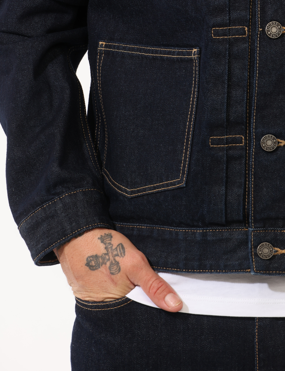 La Giacca GUESS Blu da uomo è un capo essenziale per la stagione primavera estate, pensato per chi cerca uno stile contemporaneo, versatile e facile da indossare ogni giorno. Realizzata in jeans non slavato, si distingue per l’impuntura gialla a contrasto che valorizza il design e aggiunge un dettaglio distintivo, capace di rendere il look immediatamente riconoscibile ma mai eccessivo.