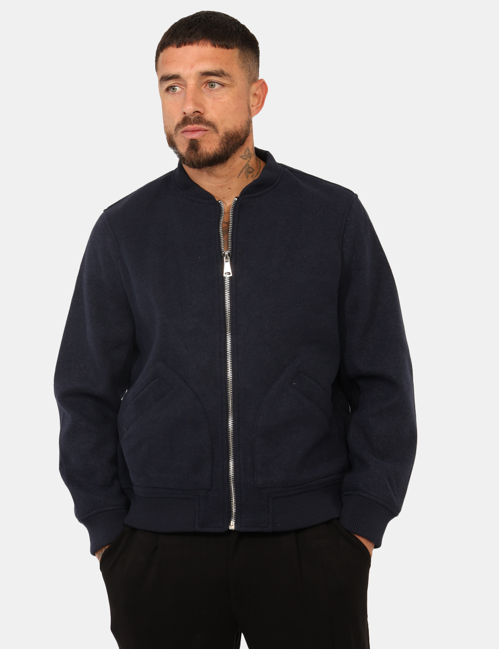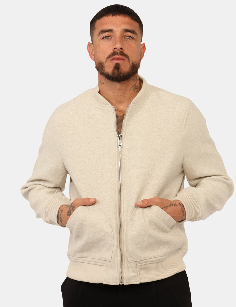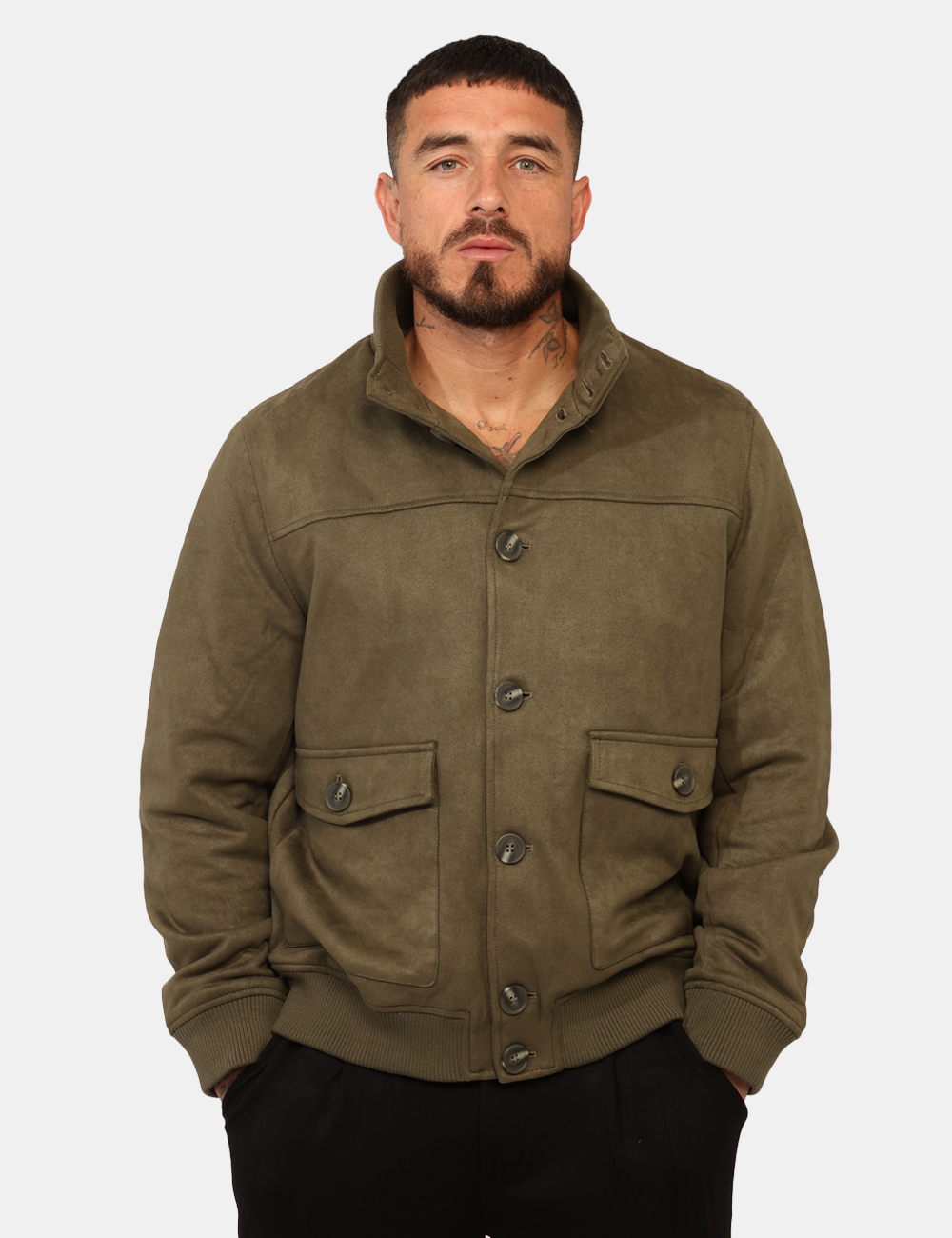 Il modello indossa la taglia L ed è alto 184 cm e la vestibilità è regolare. Spalle: 50 cm – Lunghezza: 46 cm – Manica: 69 cm