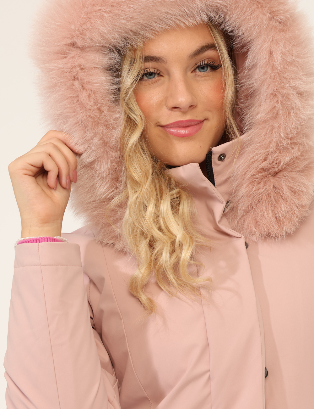 100% poliestere imbottitura 90% piuma 10 % piumetta 100% vera pelliccia