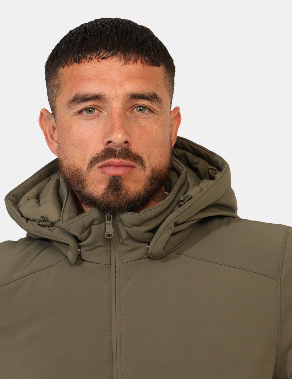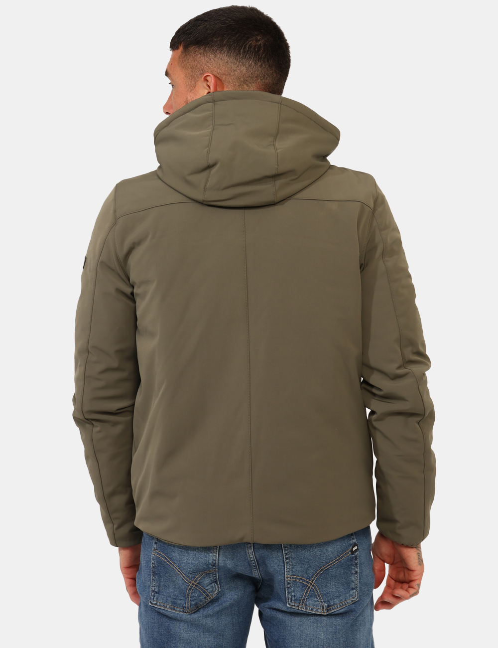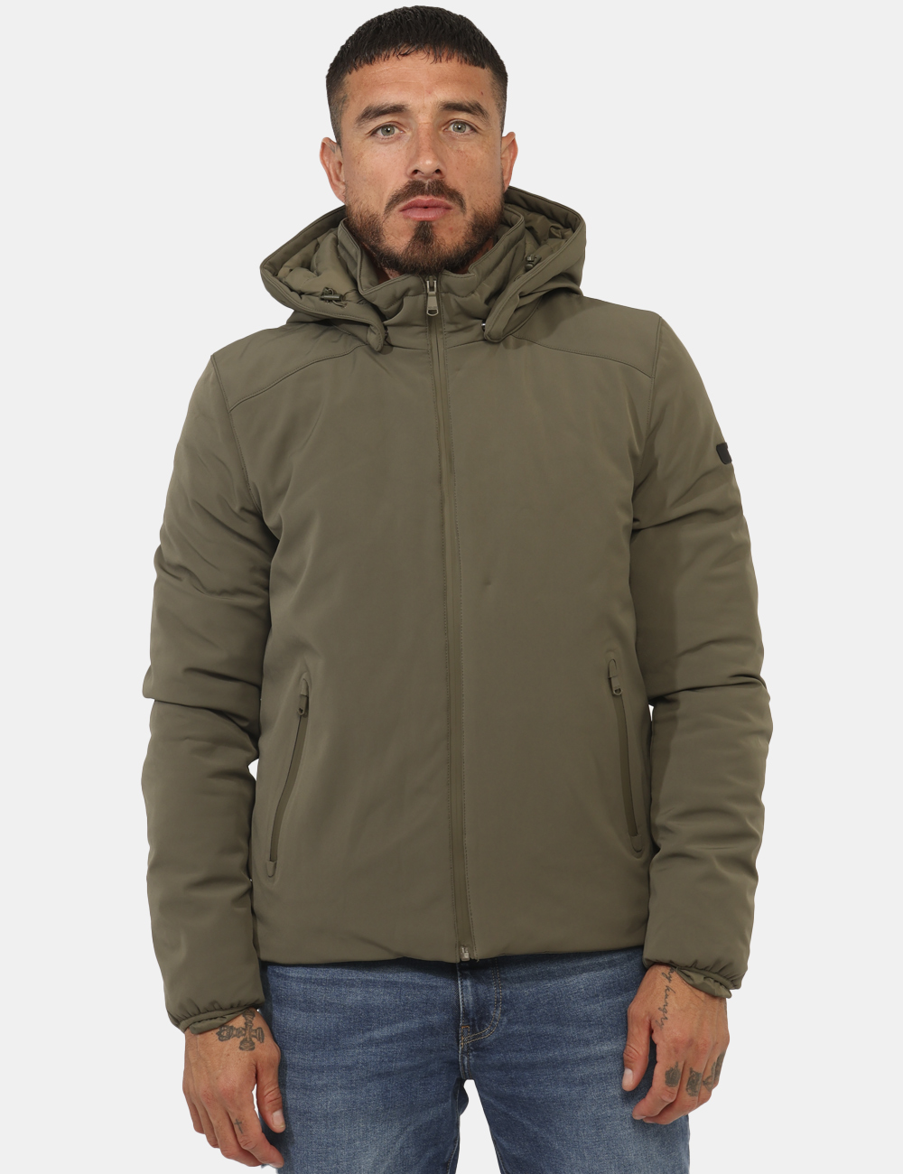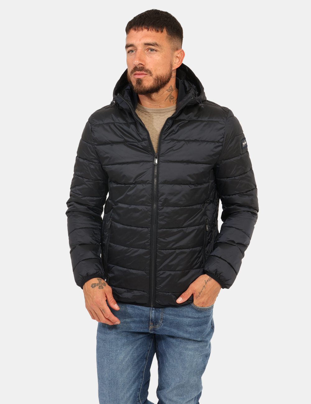 Piumino corto con cappuccio rimovibile. Vestibilità ridotta.