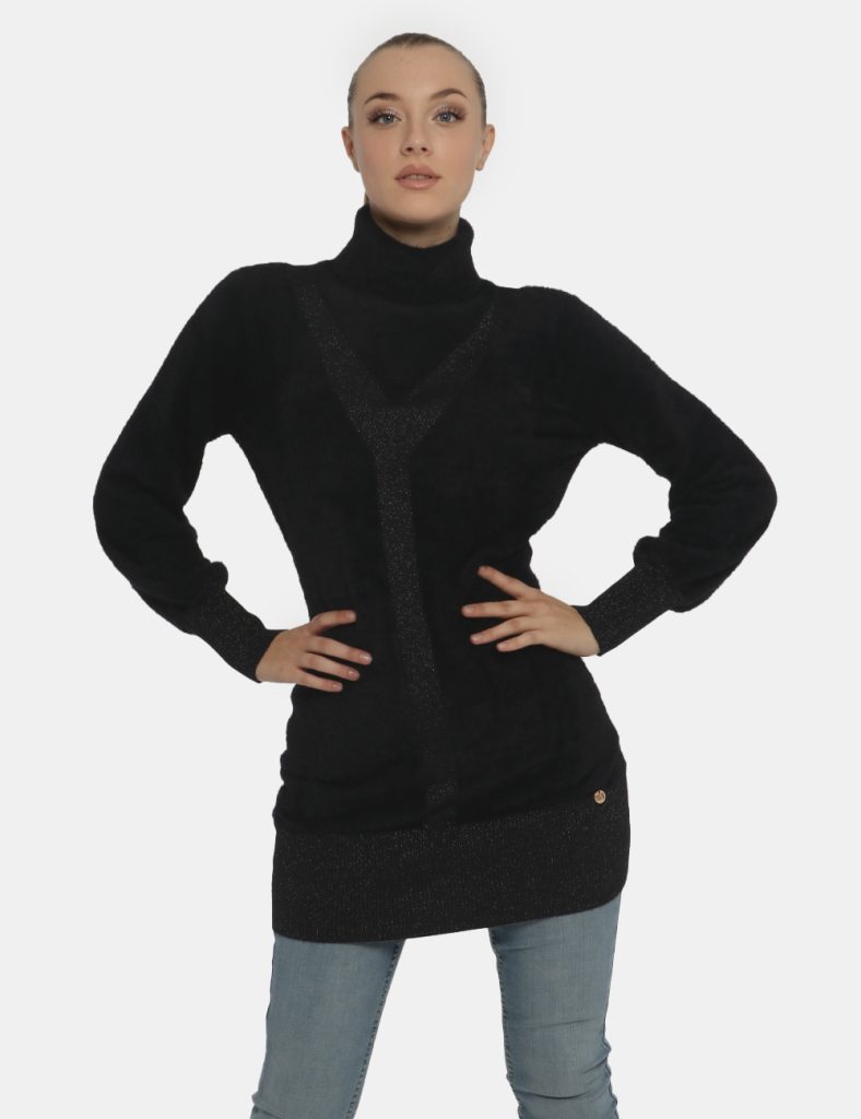 La modella è alta 170 cm e veste la taglia 27 US corrispondente alla 40/42 italiana. La vestibilità del capo è regolare.