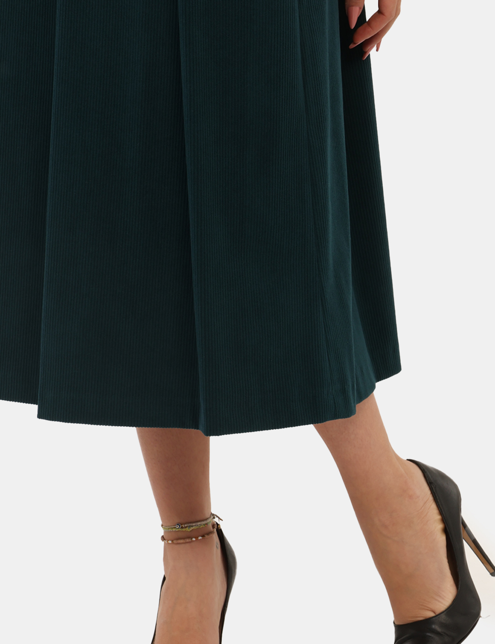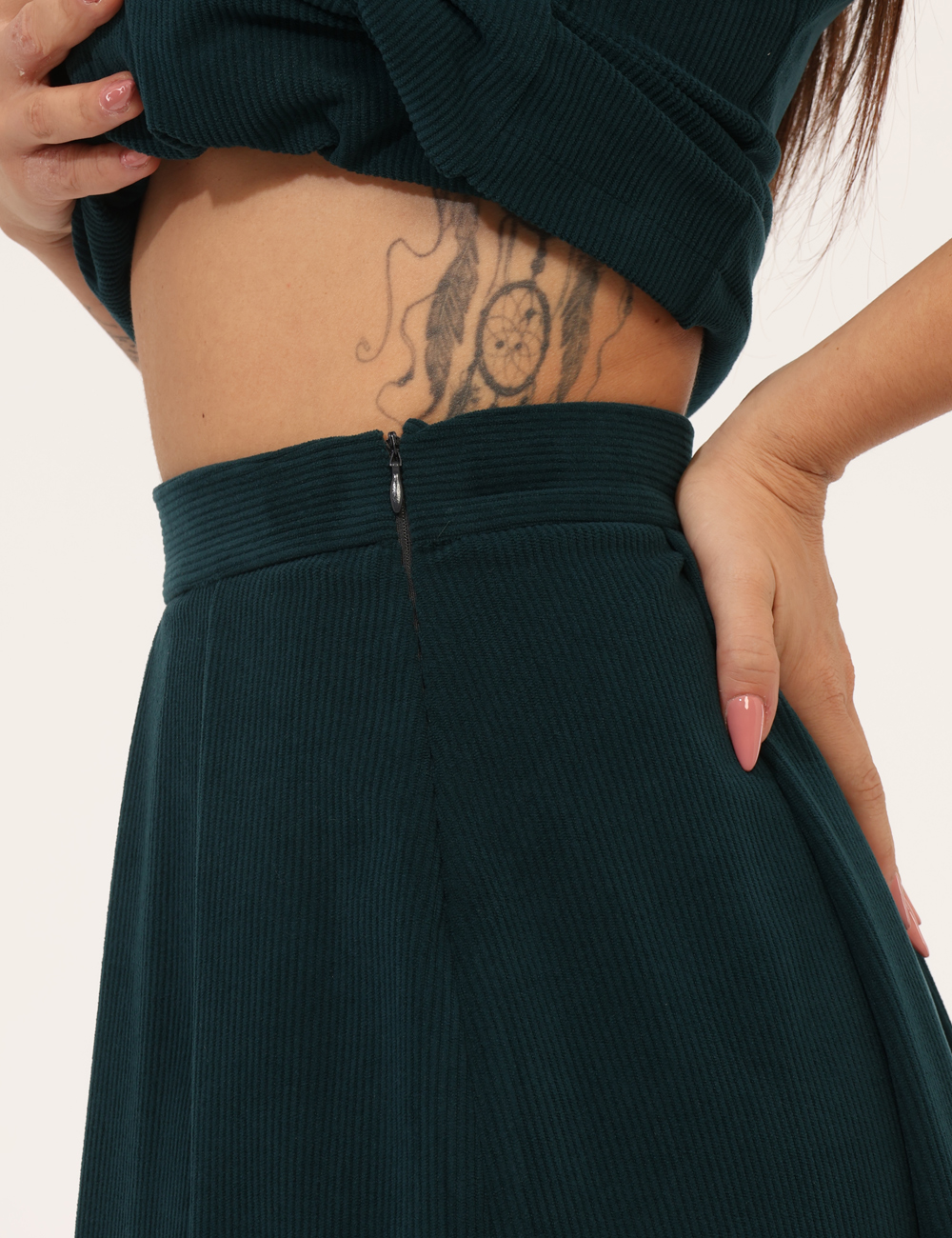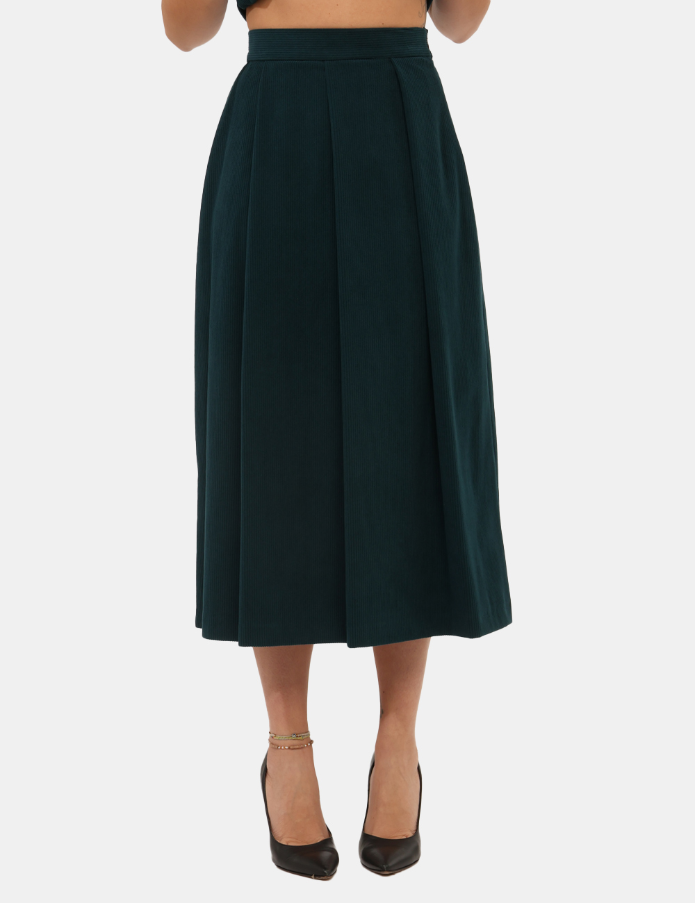 Gonna lunga, in simil velluto, in total verde bottiglia e con zip laterale che permette una vestibilità pratica. Il capo è è morbido e adatto per occasioni casual/raffinate, facilmente combinabile con la maglia o il blazer coordinato per dar vita ad un tailleur perfetto. Se vuoi essere impeccabile sai cosa indossare.