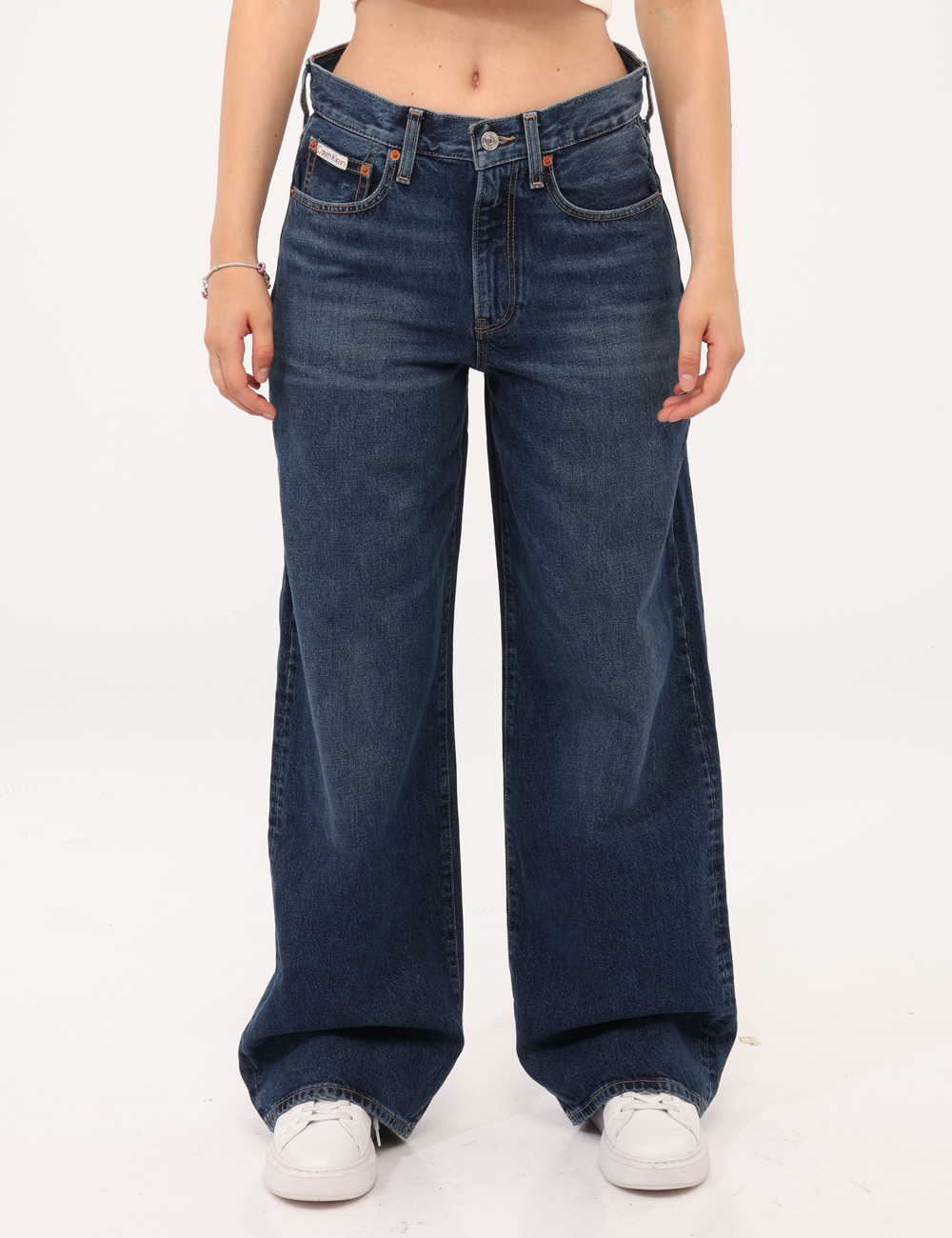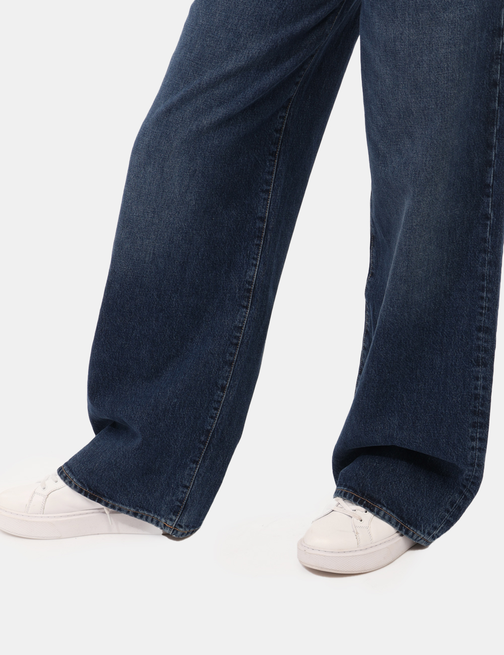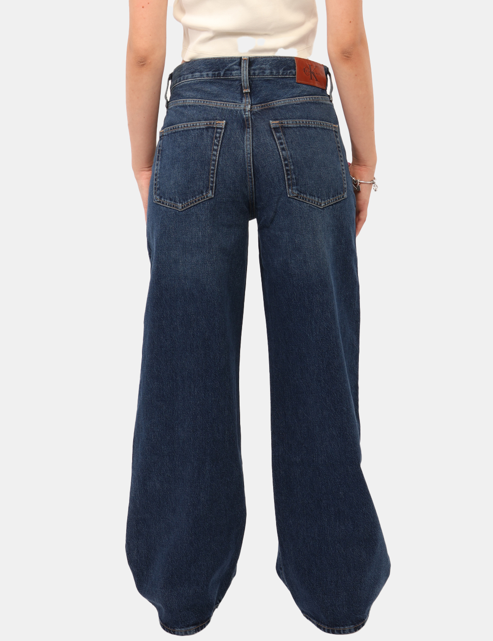 Jeans modello a zampa, in total blu denim slavato, con tasche a taglio trasversale e tasche a toppa sul retro. La vestibilità è morbida e pratica grazie a bottone più zip. I jeans sono adatti per occasioni casual e facilmente combinabili. Questo capo è una certezza: indossalo per non sbagliare mai.