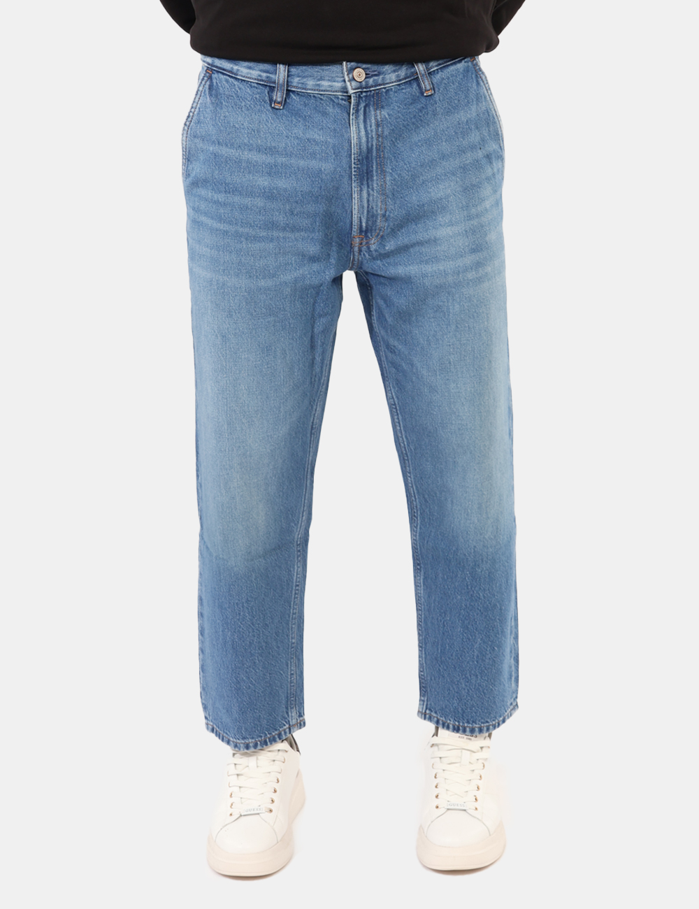 Jeans classico in total blu denim, con tasche sagomate sul fronte e tasche a toppa sul retro. La vestibilità è morbida e pratica grazie a bottone più zip. I jeans sono adatti per occasioni casual e facilmente combinabili. Questo capo è un classico che non tramonta mai.