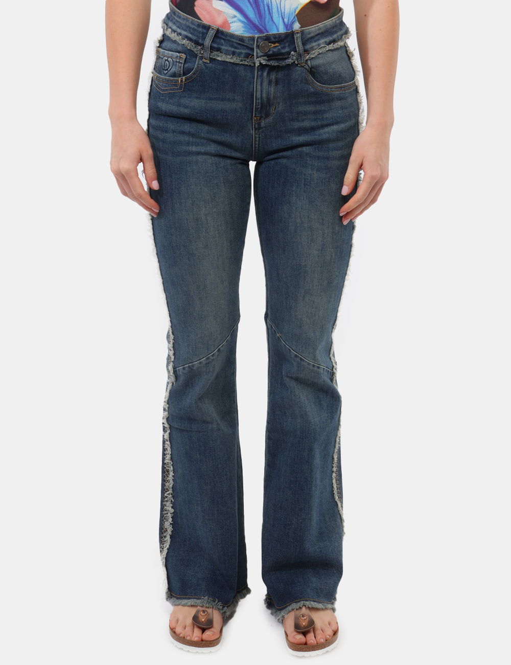I Jeans DESIGUAL Blu sono la scelta perfetta se desideri un capo di carattere, capace di unire comfort e stile contemporaneo. Questi jeans da donna adatti alla primavera estate si distinguono per la loro linea con zampa ampia e vita regolare, pensata per valorizzare la silhouette con un tocco moderno e disinvolto.