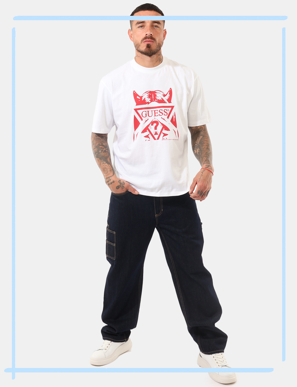 Per un look casual e contemporaneo, abbinali a una t shirt e a una felpa, completando l’outfit con sneakers per uno stile dinamico e urbano. In alternativa, puoi indossarli con una camicia leggera per un risultato più curato ma sempre informale. I Jeans GUESS diventano così un capo essenziale del guardaroba maschile.