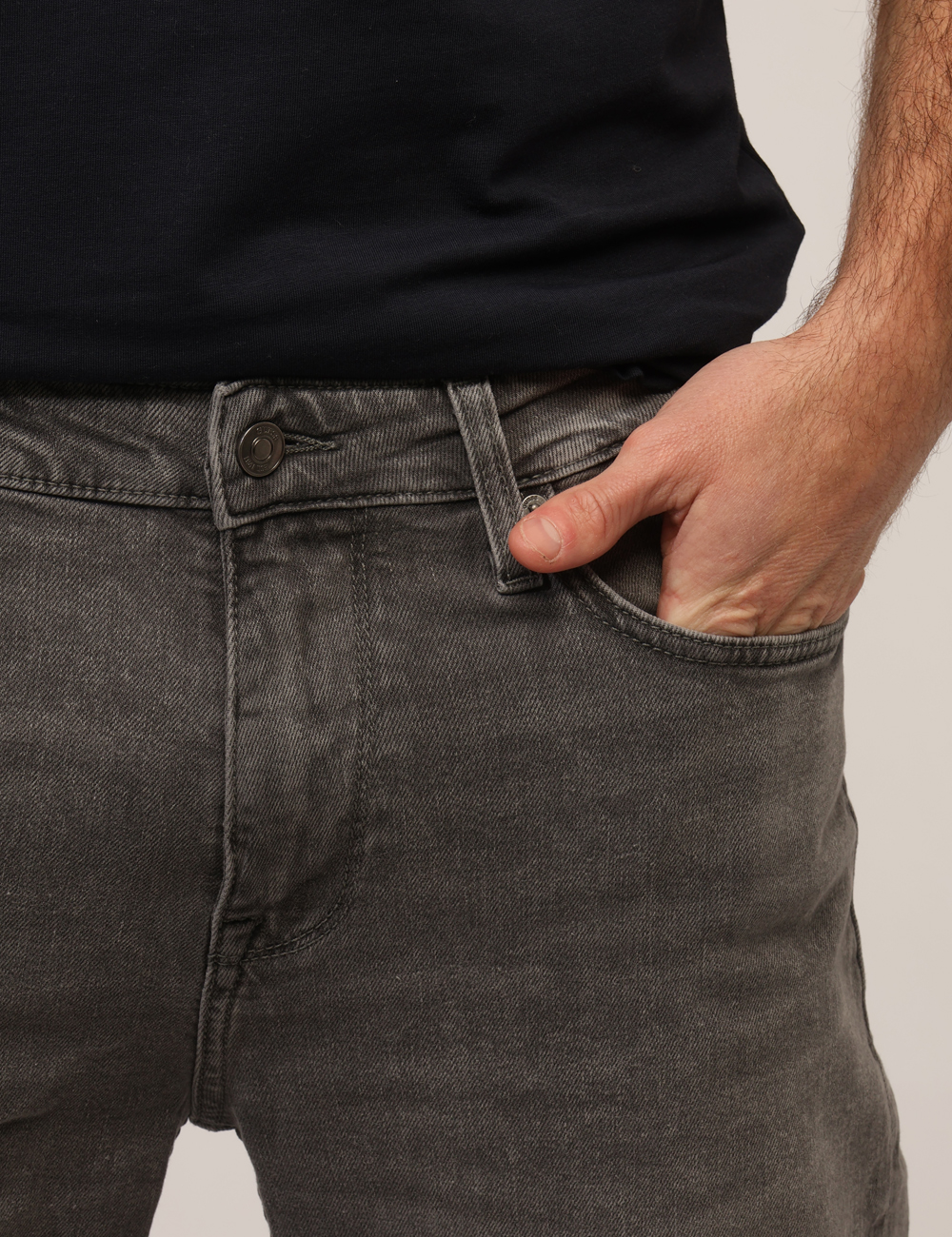 Il design presenta tasche, bottone e zip, dettagli funzionali che definiscono una linea pulita e intramontabile. La vestibilità è regolare, pensata per offrire equilibrio tra comfort e struttura. Il modello è alto 187 cm e indossa la taglia 33 US, corrispondente alla 46/48 italiana, un riferimento utile per orientarti nella scelta della misura più adatta.