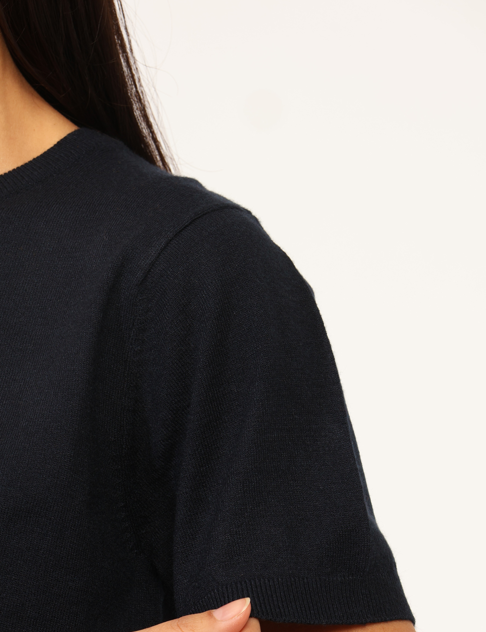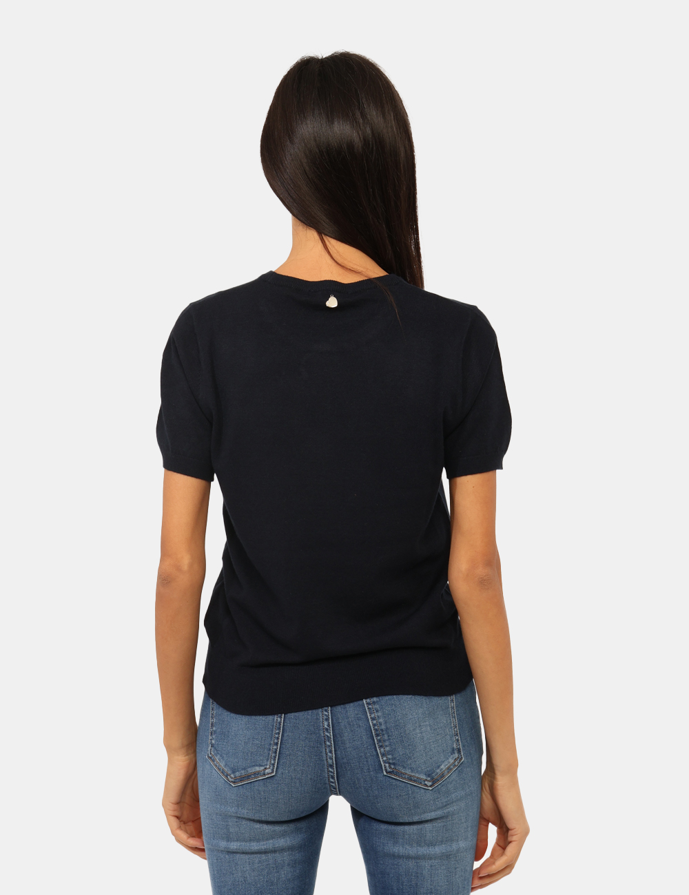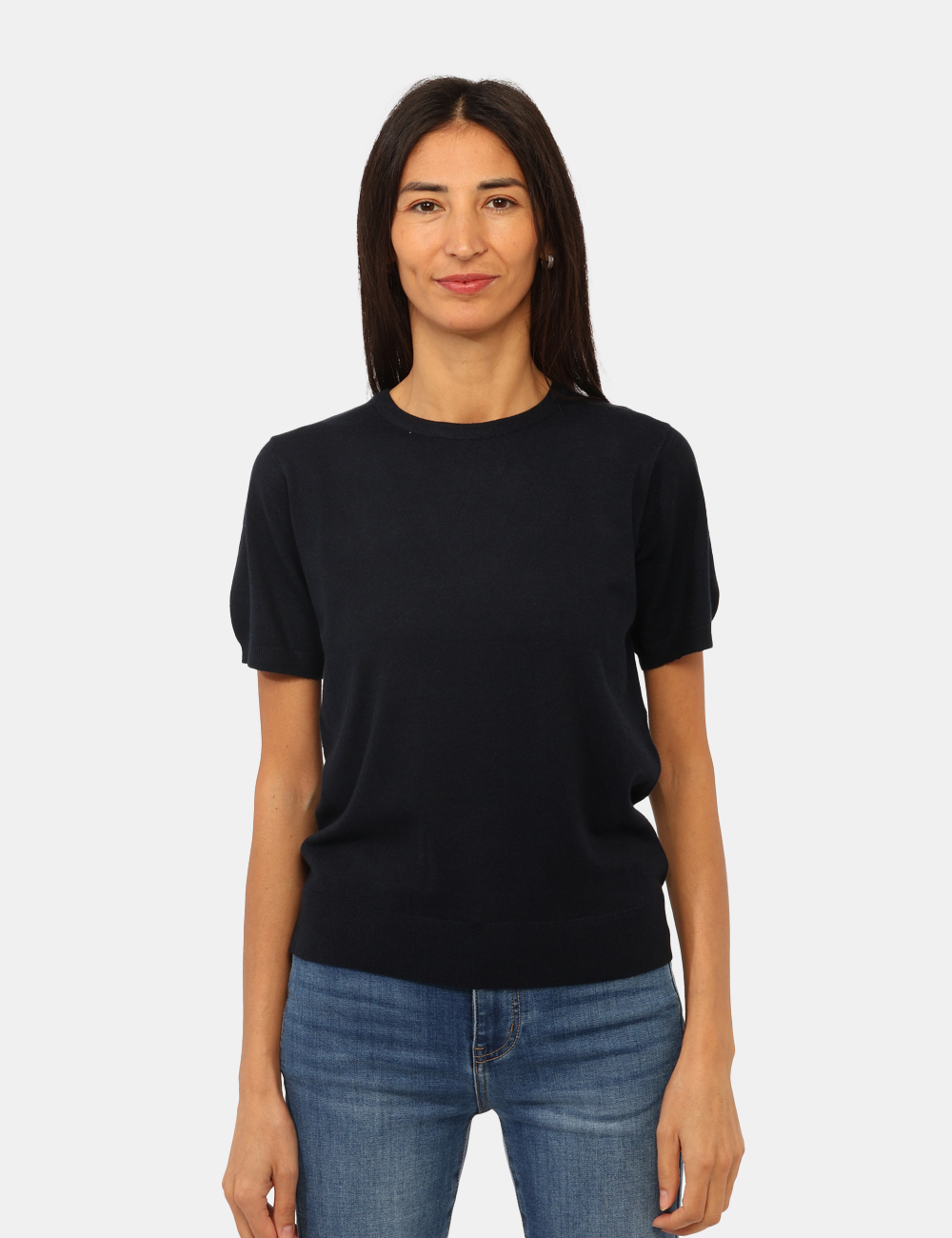 Maglia a maniche corte in total blu con girocollo classico. La vestibilità è morbida e regolare, la maglia è adatta per occasioni casual ideale con un blazer. Dona un tocco di stile ai tuoi outfit.