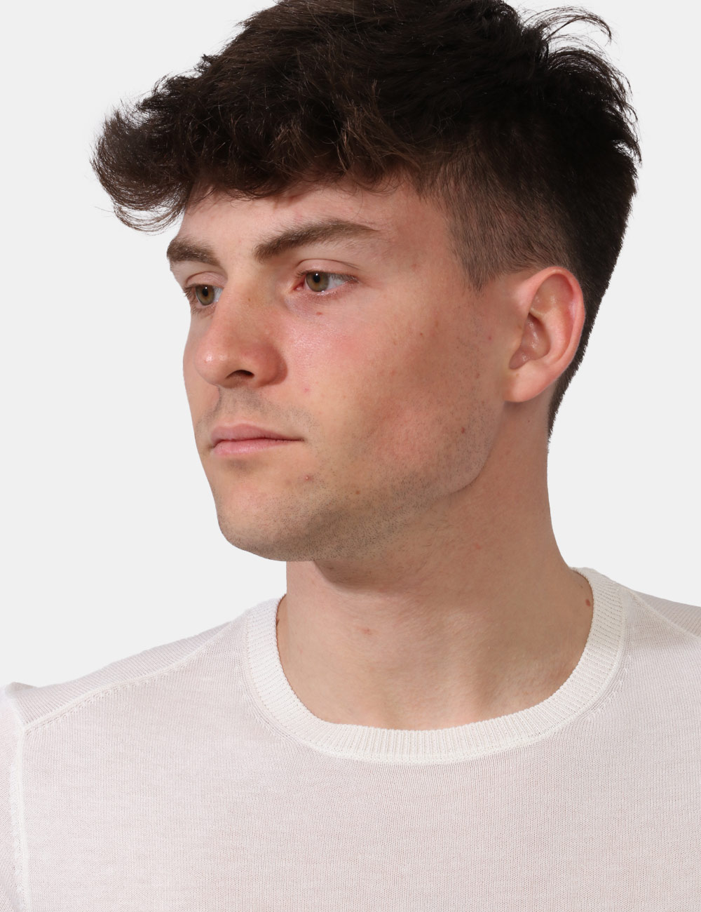 Maglia a maniche corte, tessuto leggero e lavorato in total bianco. Presente girocollo classico. La vestibilità è morbida e regolare. La maglia è adatta per occasioni casual e facilmente combinabile. Praticità e stile in un solo capo.