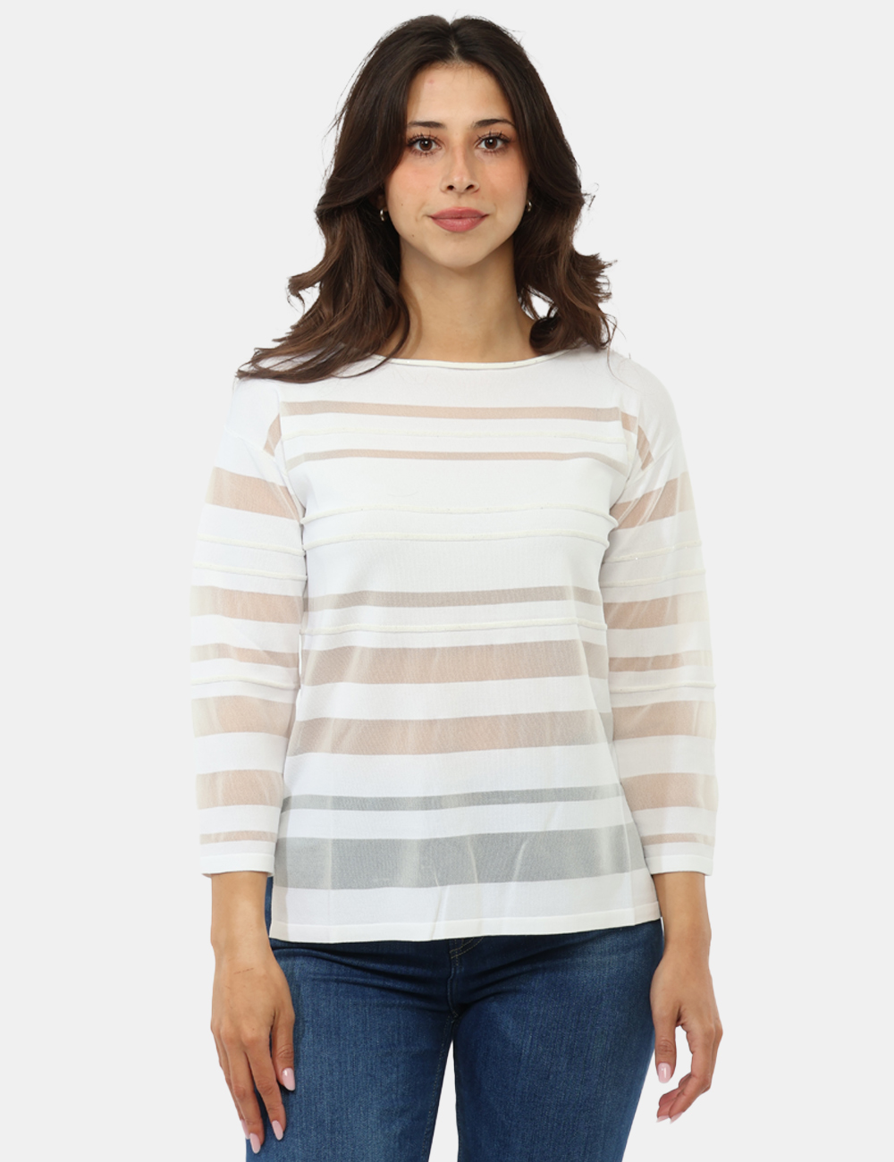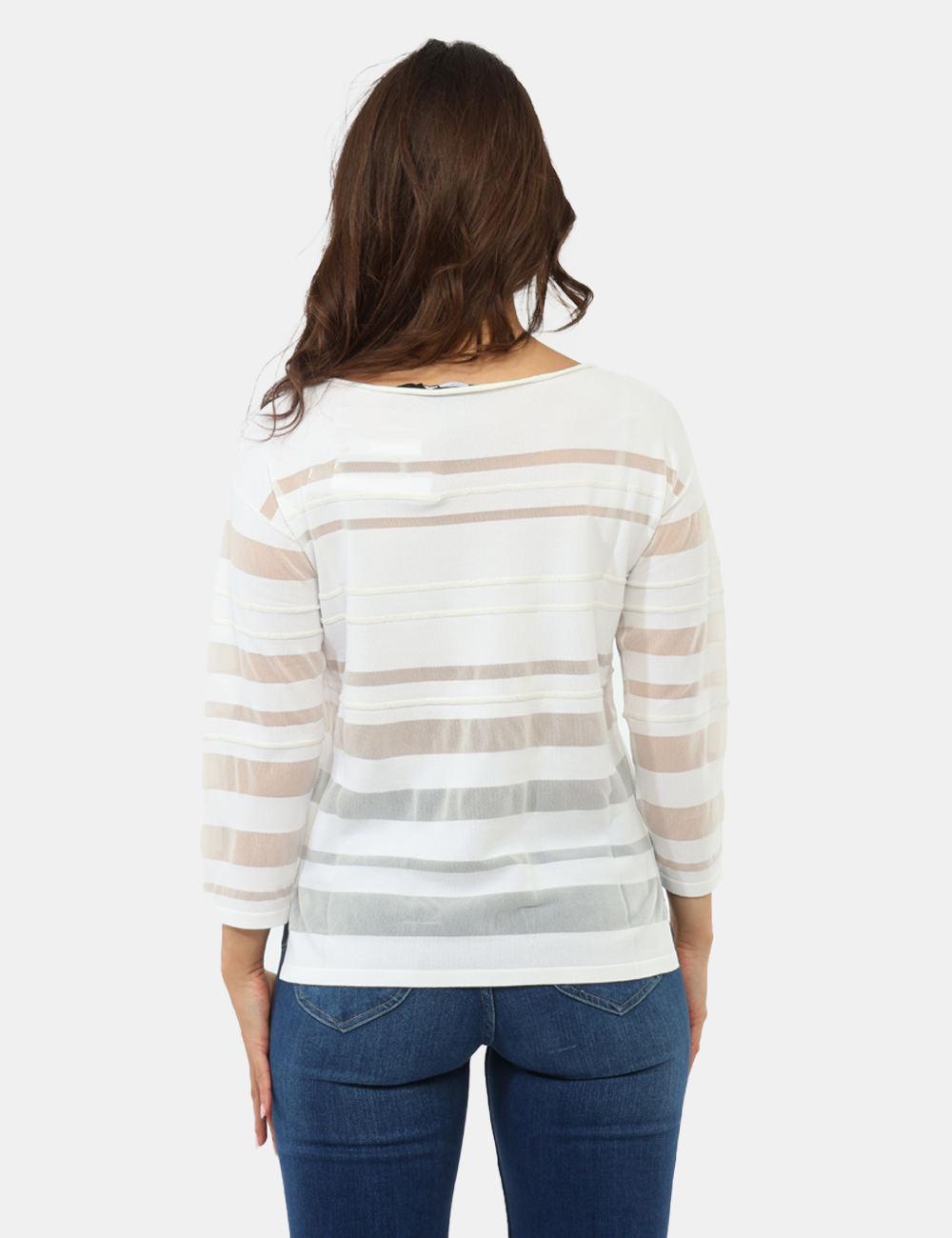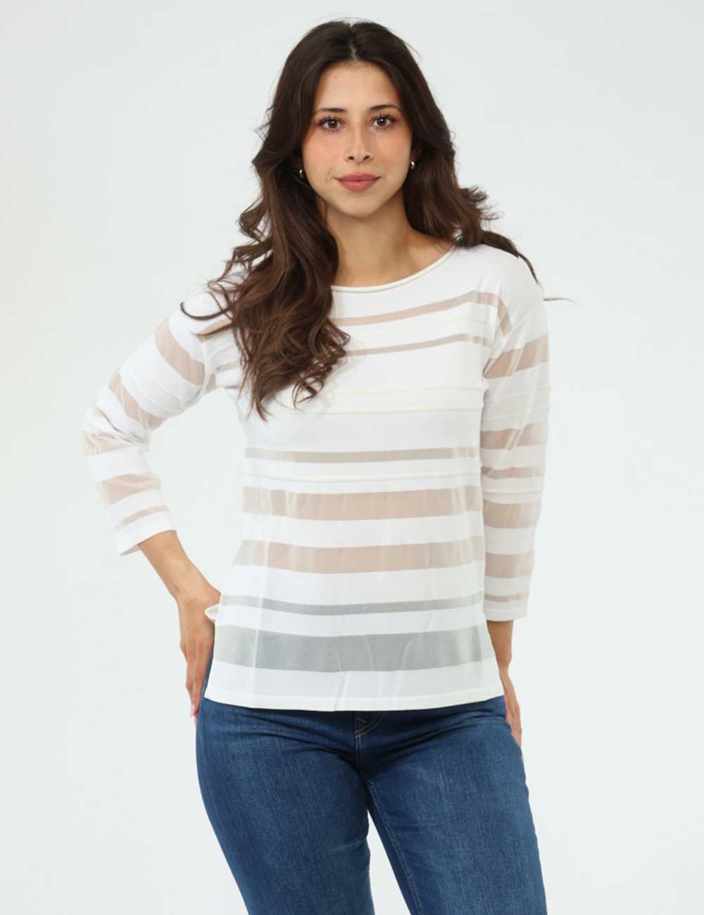 Perfetta per il tempo libero ma anche per occasioni più curate, puoi indossarla sia di giorno che di sera con estrema versatilità. Abbinala a un jeans per un look casual e femminile, oppure scegli un pantalone elegante per un outfit più raffinato. La maglia con righe orizzontali con trasparenza e brillantini è ideale per chi ama distinguersi con dettagli luminosi e moderni.
