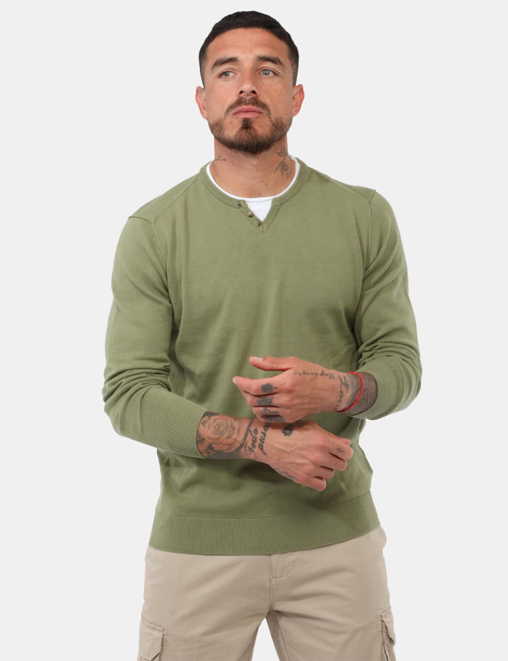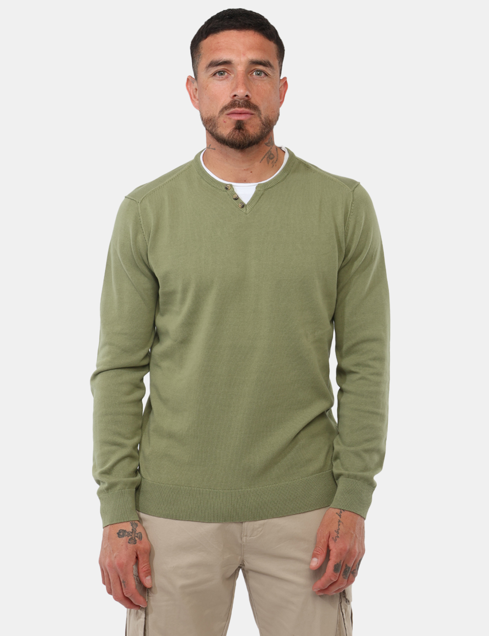 Realizzata in 100% cotone, offre una sensazione naturale sulla pelle e una traspirabilità ottimale, ideale per un utilizzo quotidiano. Il design è arricchito da dettagli distintivi come il girocollo con effetto t-shirt applicato e i bottoncini, che rendono questa maglia con girocollo t-shirt applicato e bottoncini un capo semplice ma ricercato. La vestibilità regolare garantisce una linea comoda e naturale: il modello è alto 187 cm e indossa una taglia L.