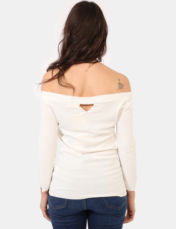 Maglione con scollo a barchetta in total bianco. La vestibilità è morbida e regolare. La maglia è adatta per occasioni casual e facilmente combinabile. Praticità e stile in un solo capo.
