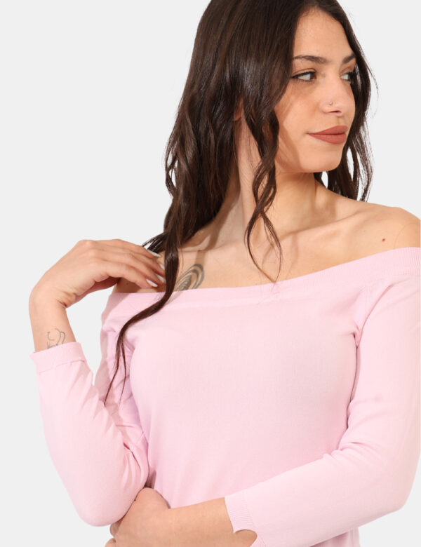 Maglione con scollo a barchetta in total rosa. La vestibilità è morbida e regolare. La maglia è adatta per occasioni casual e facilmente combinabile. Praticità e stile in un solo capo.